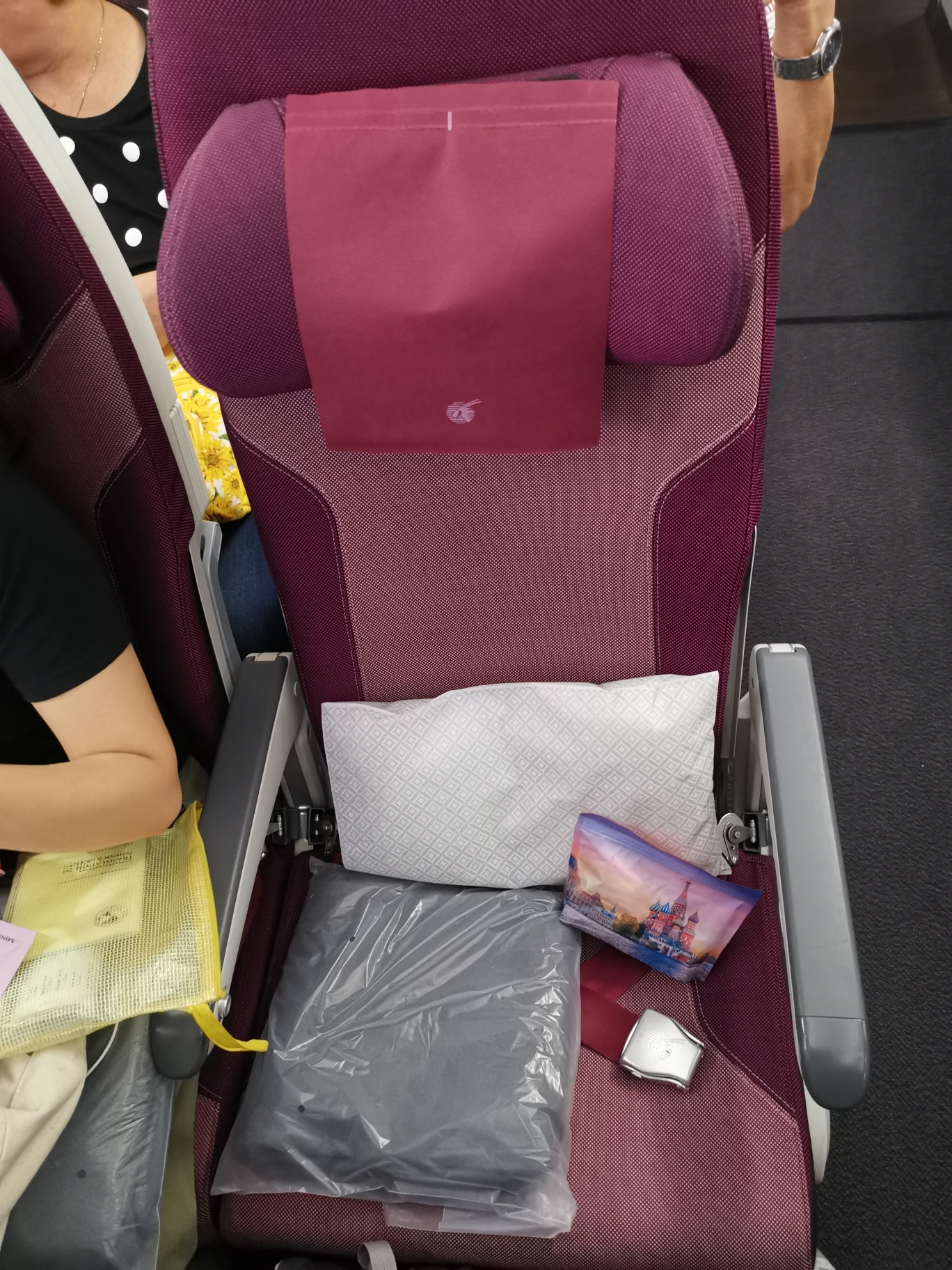 卡塔尔航空上,座椅设计非常好,有颈部可调节枕头,有毛毯,有洗漱包(牙刷,牙膏,眼罩,袜子,润唇膏,耳塞) p.s 润唇膏超好用。
