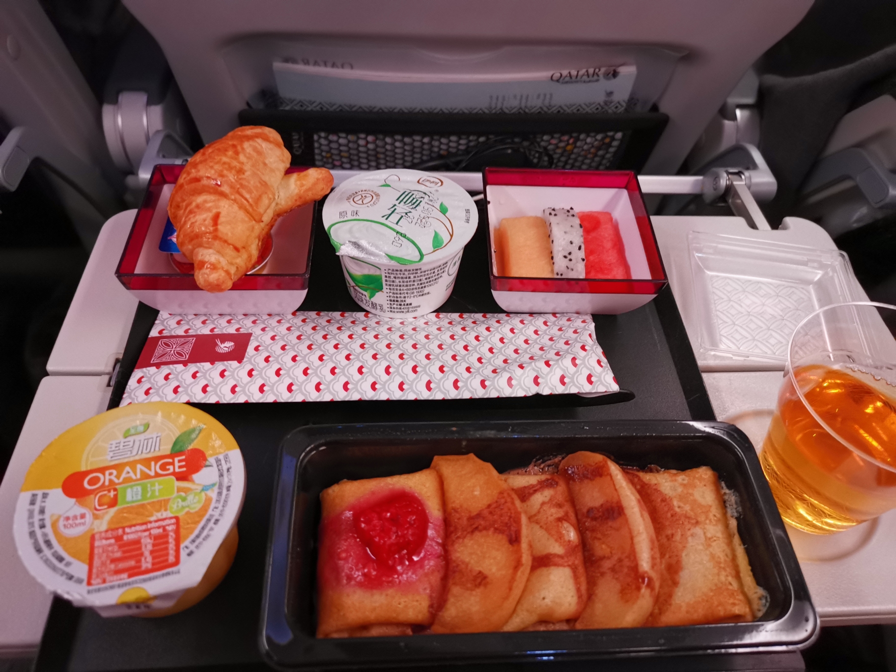 Qr的餐食真的很好吃,第一段飞多哈,有两个餐,一个是晚班,一个是早餐。第二段有一个早餐,回程一样。土豪TK内陆段一个多小时也有餐食,有一个餐包和饮料。所以虽然十几个小时飞行,但肚子不会饿到。