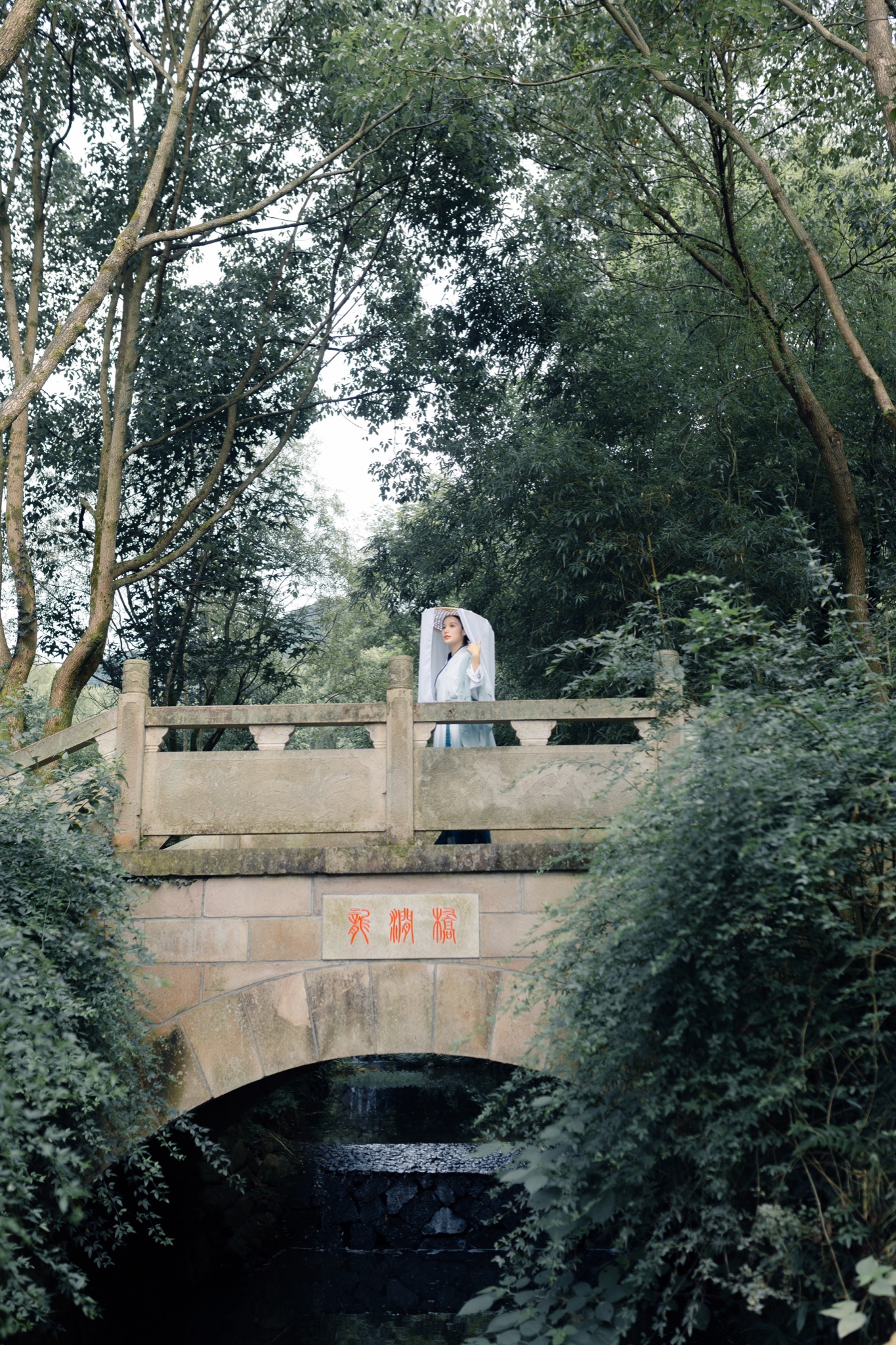鼎湖峰前的登仙桥,好像在每一部古装剧里都能看到,登仙桥为一双柱双梁石板桥。全长66米,低矮斜置石墩共43个, 登仙桥是景区入口到鼎湖峰、黄帝祠宇的必经之道。古时仰峰洲仅有过溪的渡口,后建登仙桥。从古至今,虽经多次修缮,但登仙桥的桥身已超过千年。特别是当换上汉服,走在桥上,宛若古装剧里的一帧。