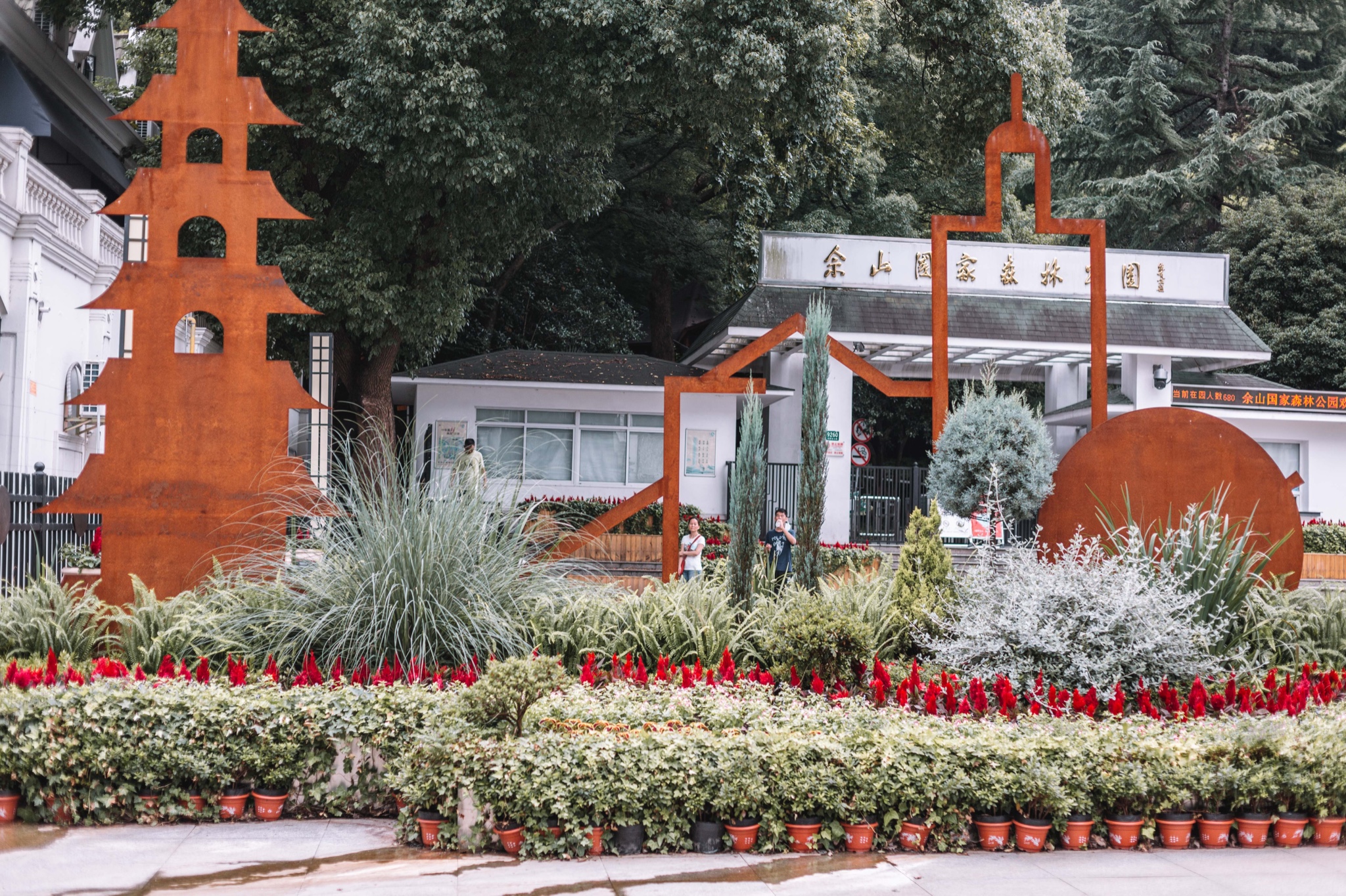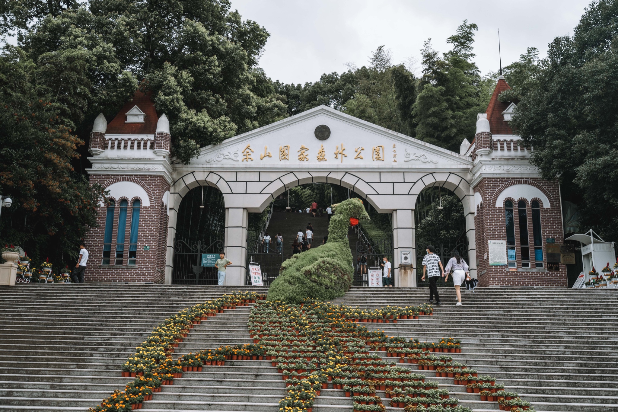 我们到达这里,主要是想看看佘山著名的天主教朝圣之地——佘山圣母大教堂。我们从东佘山下车,进门把之前在网上预约好的截图和绿码给工作人员就可以免费进入了。就算是烟雨天气,来到社山公园的人还真不少,大家排着队进入,都打算来这里放松一下。