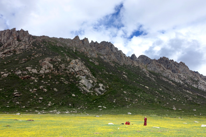 还记得那一年的夏日,阳光依旧好,康区高原是绿油油的颜色,草原上的风带来淡淡的花香。我走过高山峡谷,经过辽阔的草原,伴着桑烟缭绕和经幡飞舞中一路前行。回忆中前行的脚步,就像是一个旅人的剪影,迈入一帧又一帧的电影胶片之中,从一幅画面进入另一幅画面,从一个小小世界顺次切入到另一个小小世界当中。这些记忆中的影像画面至今依然栩栩如生: