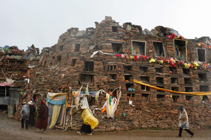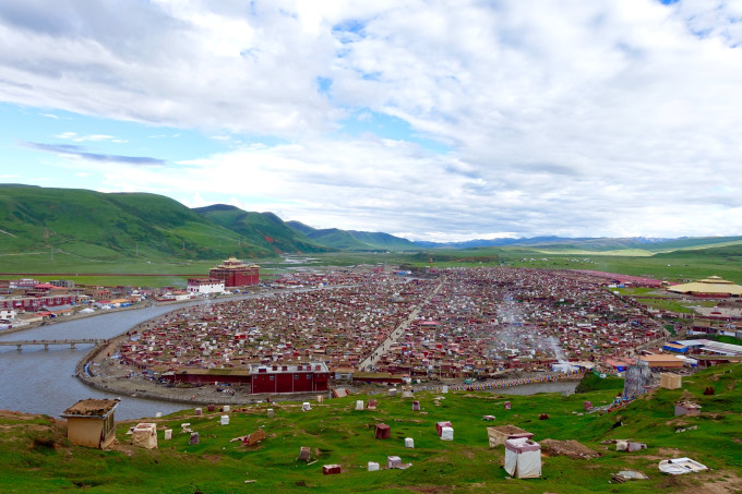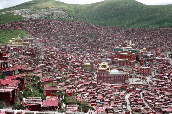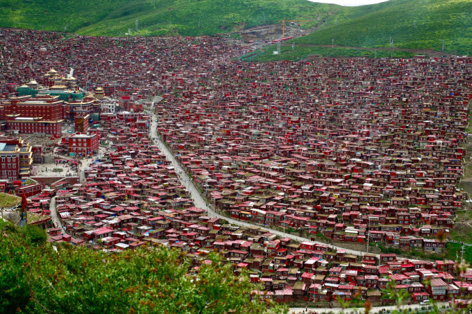 佛国色达,密布的僧舍如信仰的火焰般地在山谷中燃烧: