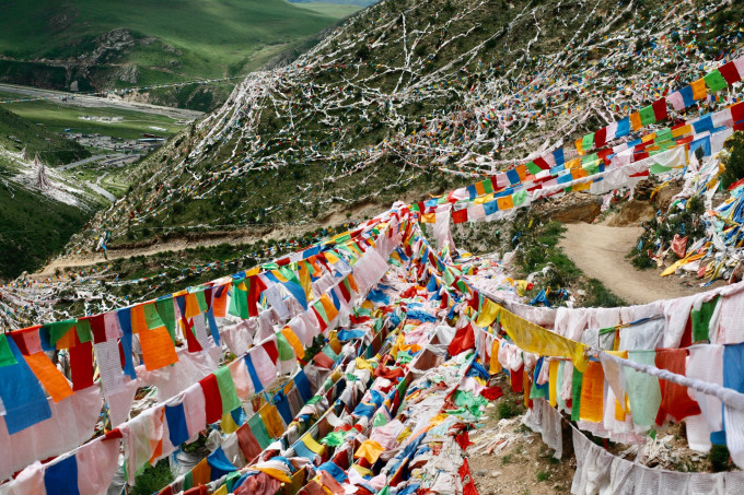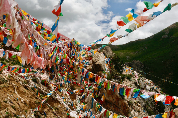 来到文成公主庙,迎着山风,在漫天经幡中展开双臂:
