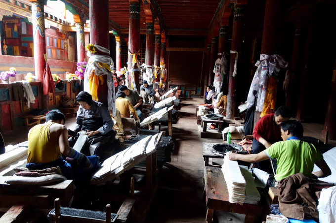 德格印经院,空间里弥漫着无尽岁月的过往气息: