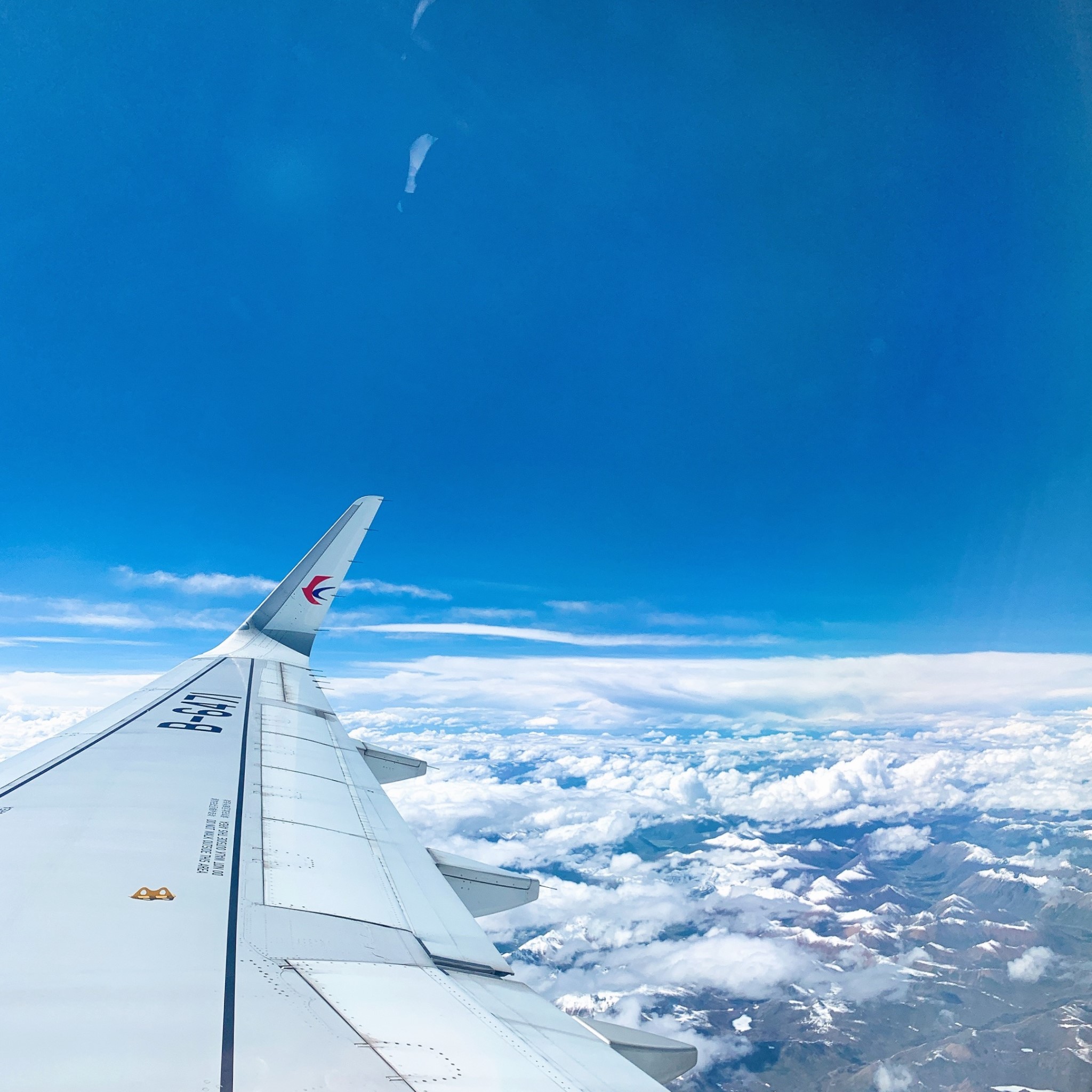 上海出发,选择了在西宁转机,来回机票含税2500元。倚窗一路俯瞰机舱外的风景,惊叹触手可及的棉花状的云朵,目不转睛看着碧绿的拉萨河和白皑皑的雪山,第一次进藏的心情既紧张又激动,只想高呼一句,拉萨,我来了!