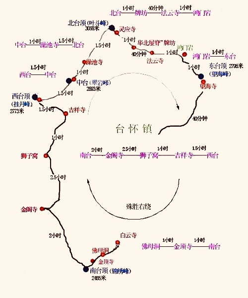 以台怀镇为中心,登上山顶顺时针走完全程。