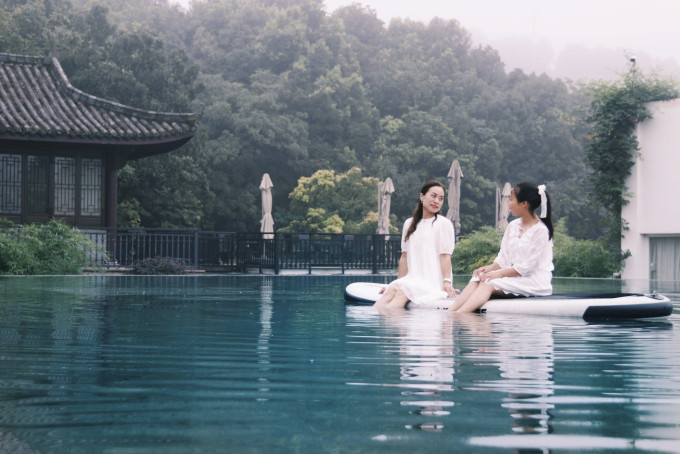 我们两个孩子包了这个泳池也是玩得甚开心!