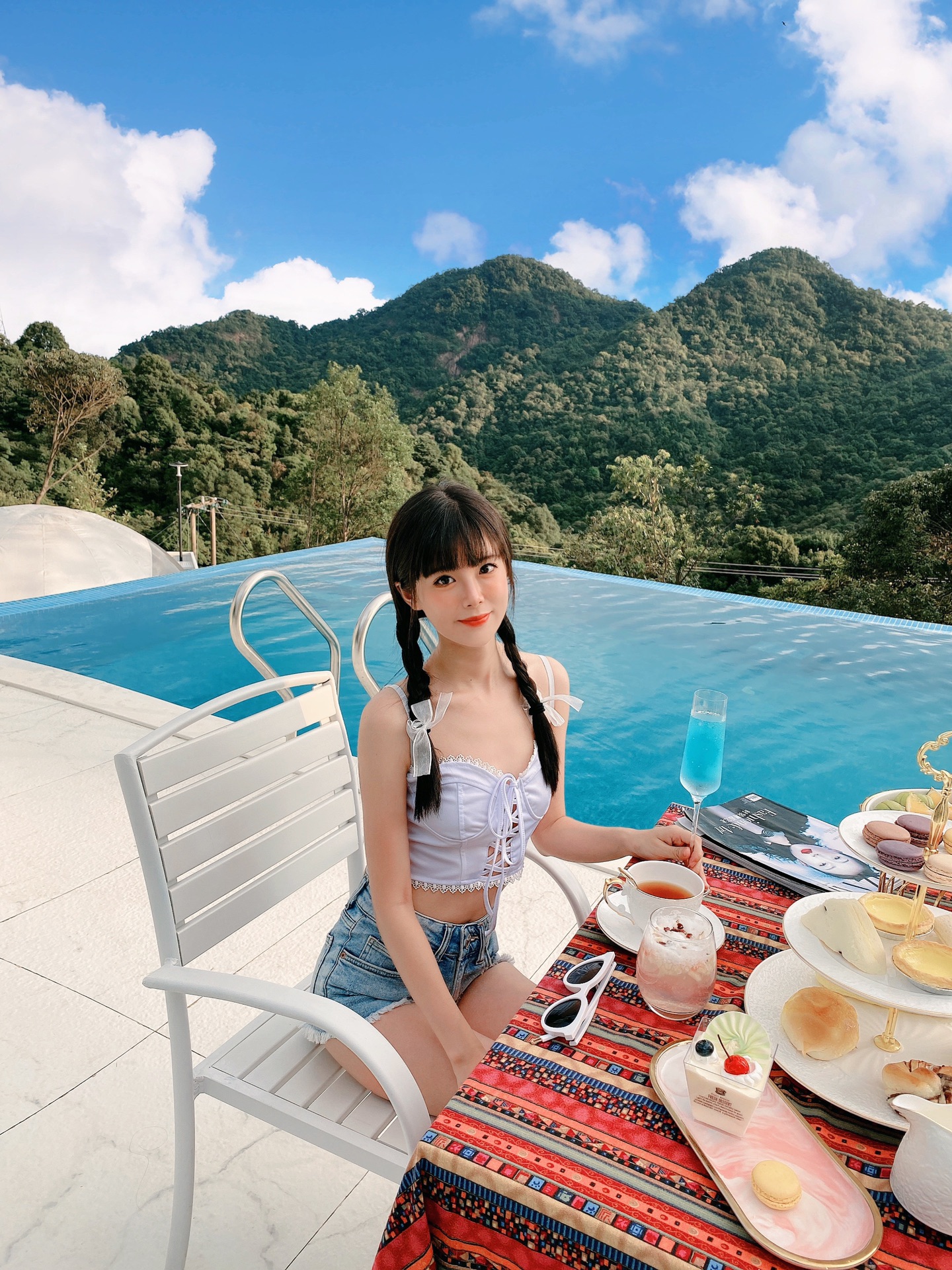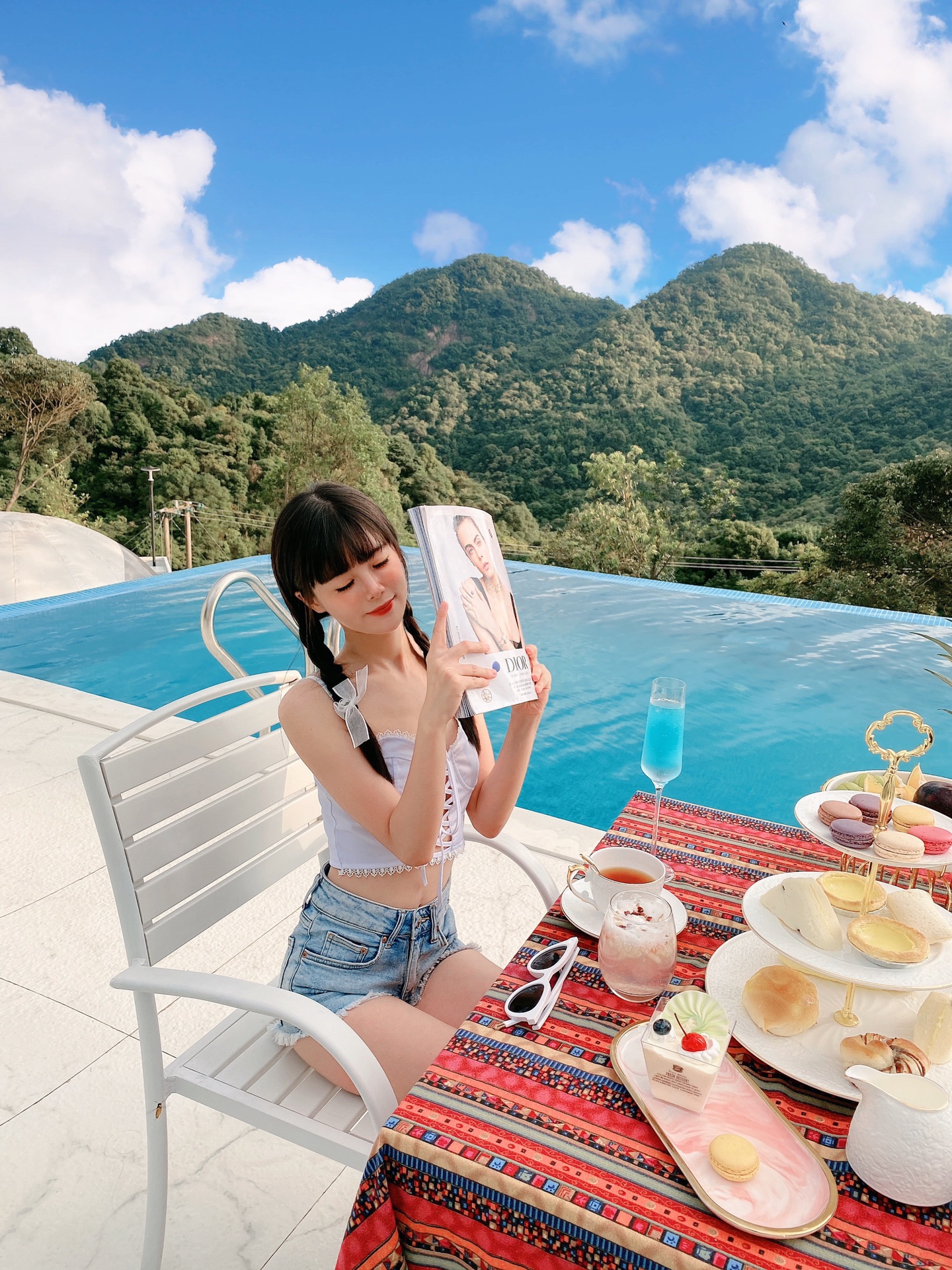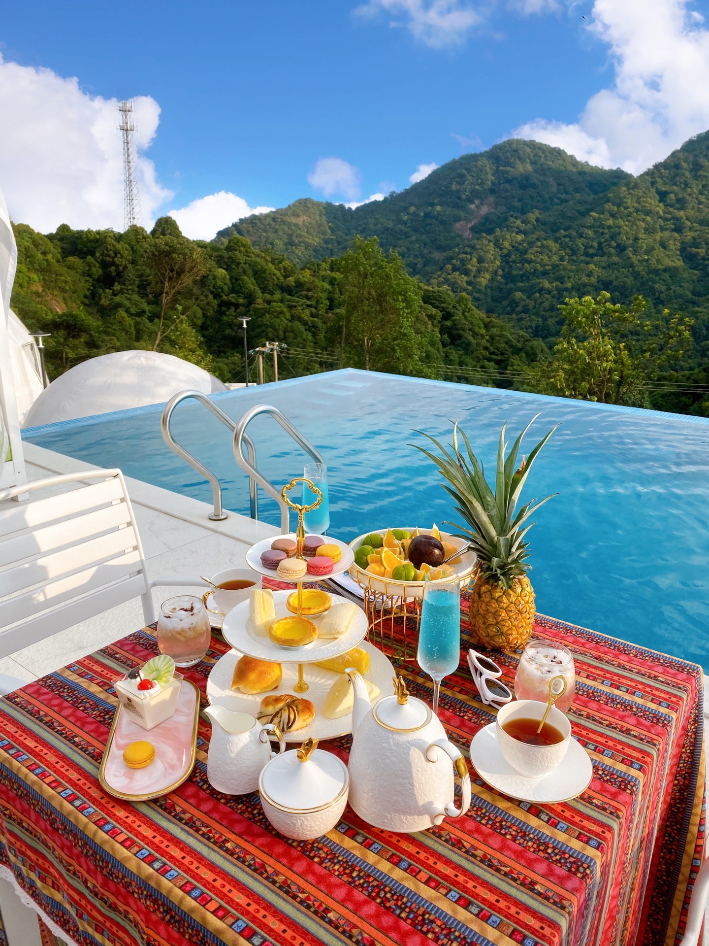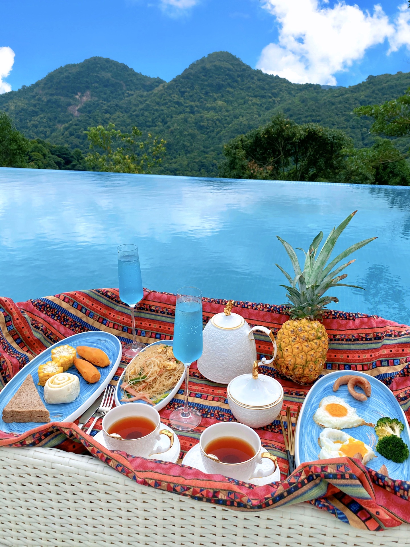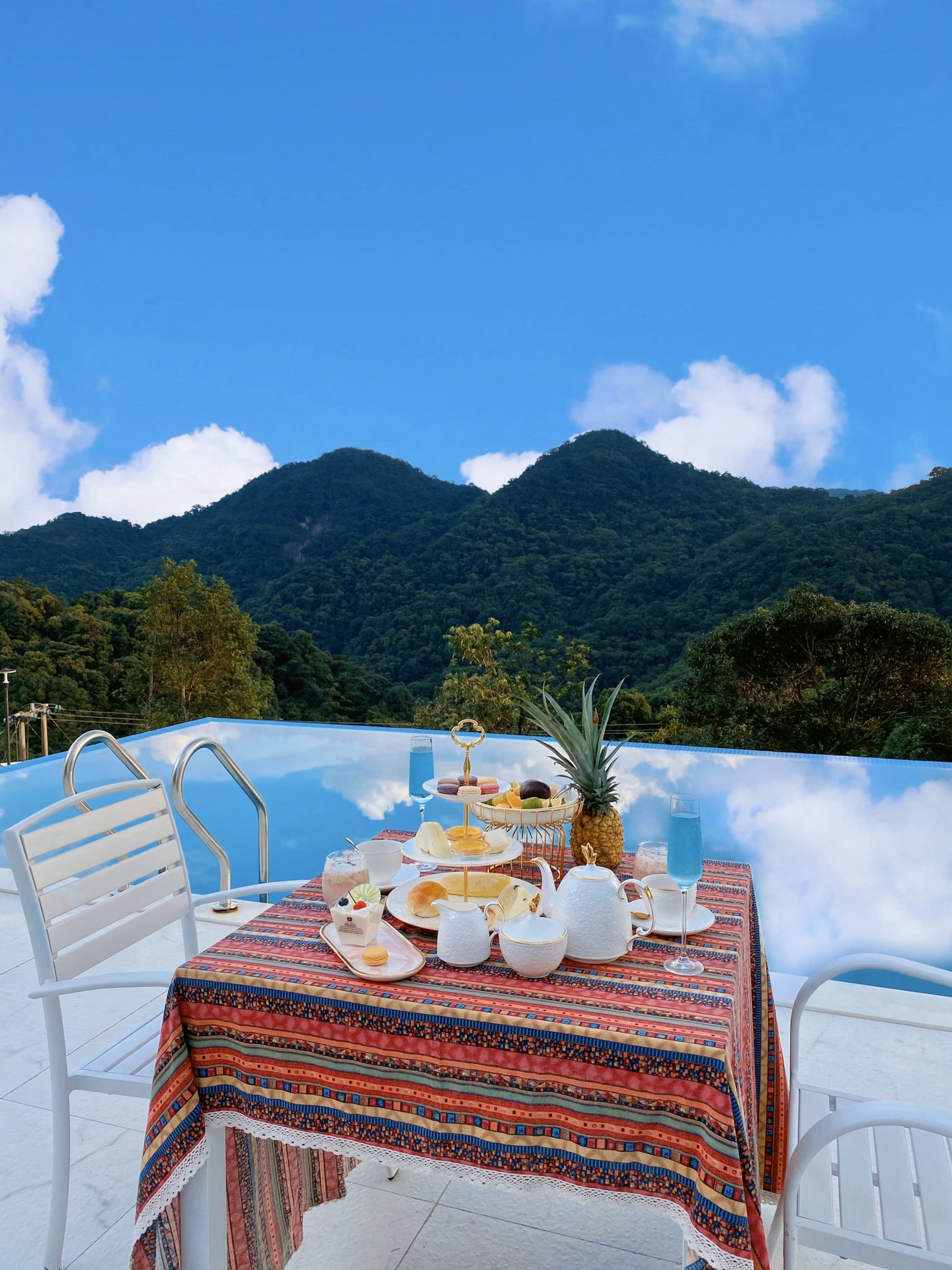 最美的就是民宿的无边泳池,拍照真的超级好看,☀️坐落在山顶上的高空泳池,在这里游泳吃漂浮早餐无疑是一种享受,特别说一下漂浮早餐,拍照真的特别美,还有泳池边的ins风下午茶哦,需要的朋友都要提前预定