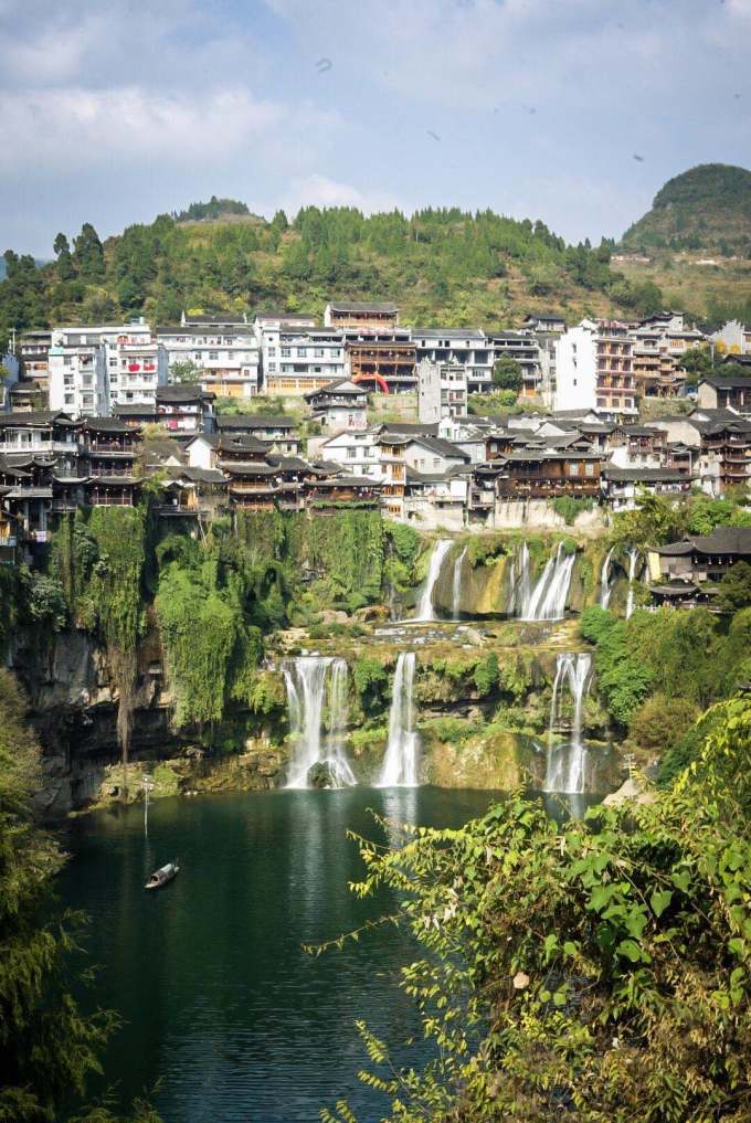 芙蓉镇,是拥有两千多年历史的古镇,因宏伟瀑布穿梭其中,又称“挂在瀑布上的千年古镇”。位于湘西土家族苗族自治州境内的永顺县.,这里四周是青山绿水,镇区内是曲折幽深的大街小巷,临水依依的土家吊脚木楼以及青石板铺就的五里长街,处处透析着淳厚古朴的土家族民风民俗,让游人至此赞不绝口,留连忘返。