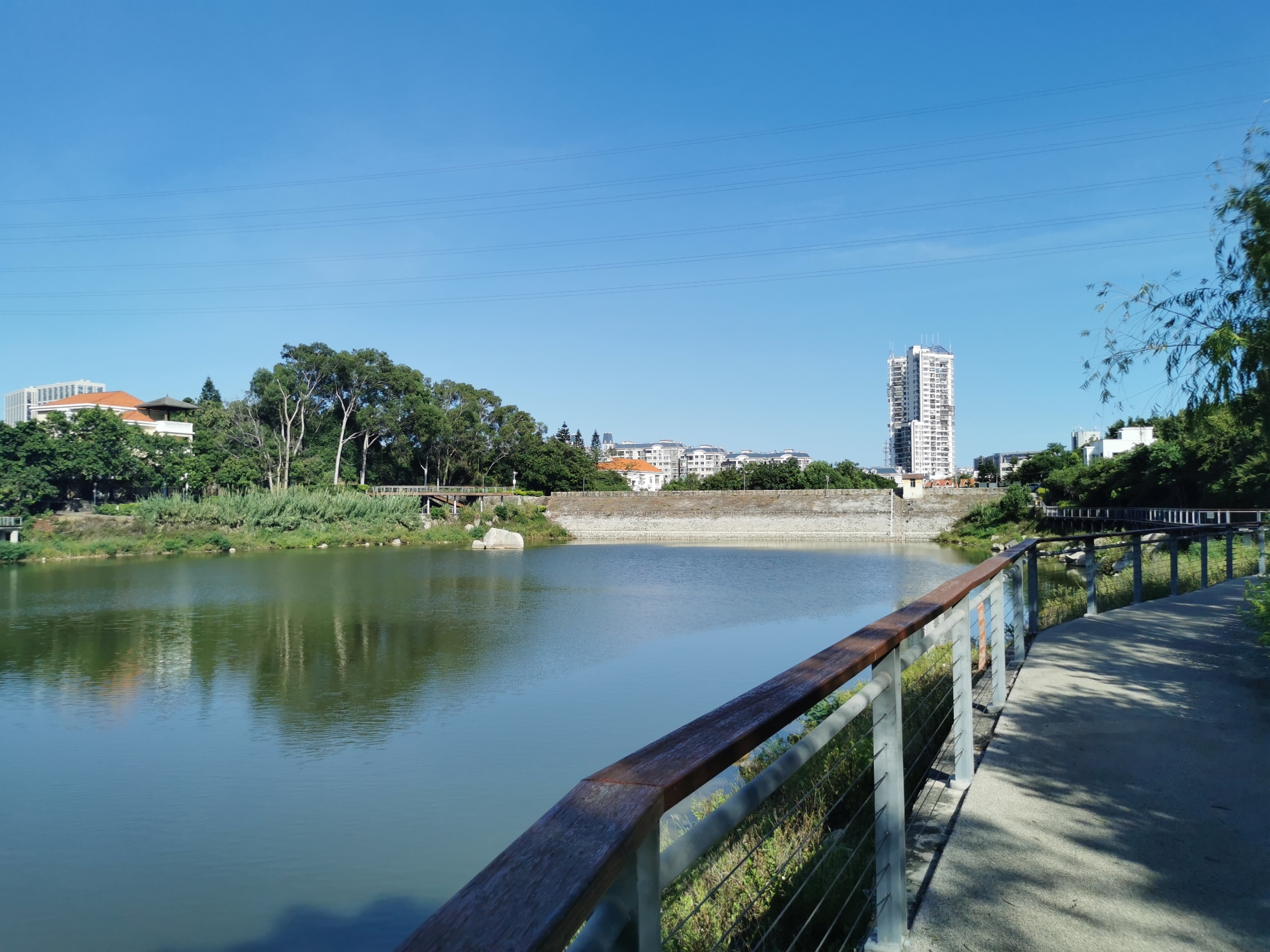 很小的公园,二十分钟逛完,就一个水库哈,水库里有三块大石头。水库边有龙眼树。有人大中午的在跑步,厉害了。