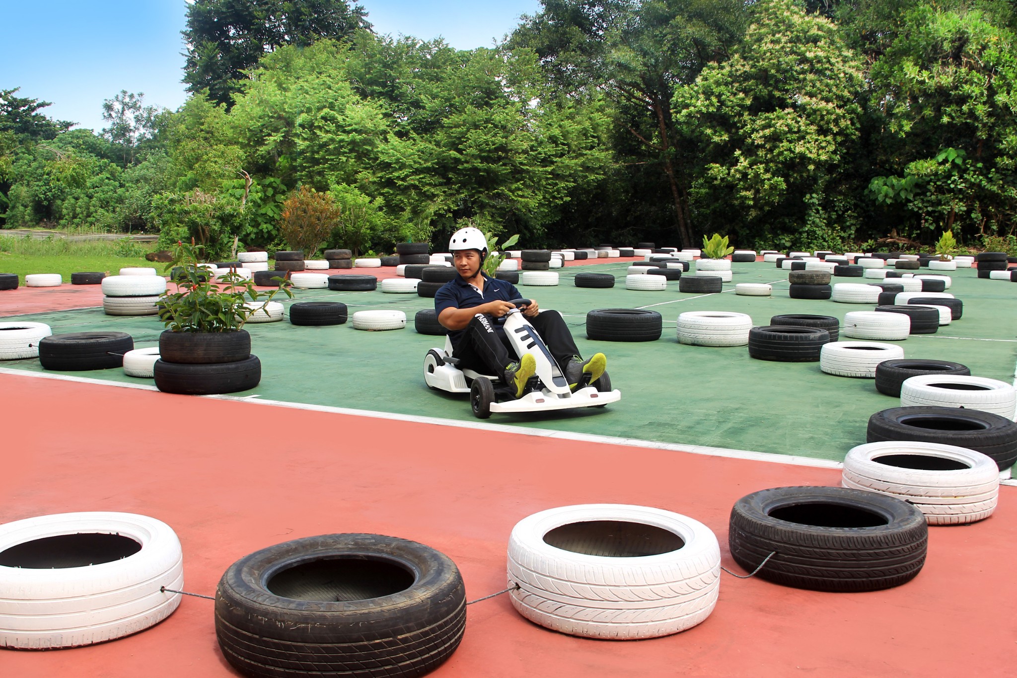 玩卡丁车不仅仅可以娱乐身心,还能锻炼灵敏度和协调能力,感受漂移的快感!度假村内的卡丁车场是大小朋友们竞技的最佳场所,宽敞的赛道内设有U型弯,S弯,等多个弯道和百米大直道。速度与激情并存的卡丁车游戏,更需要孩子克服内心的恐惧,想要快速到达终点?熟练的驾驶技巧、冷静的应对策略、贴地飞行的勇气都缺一不可。