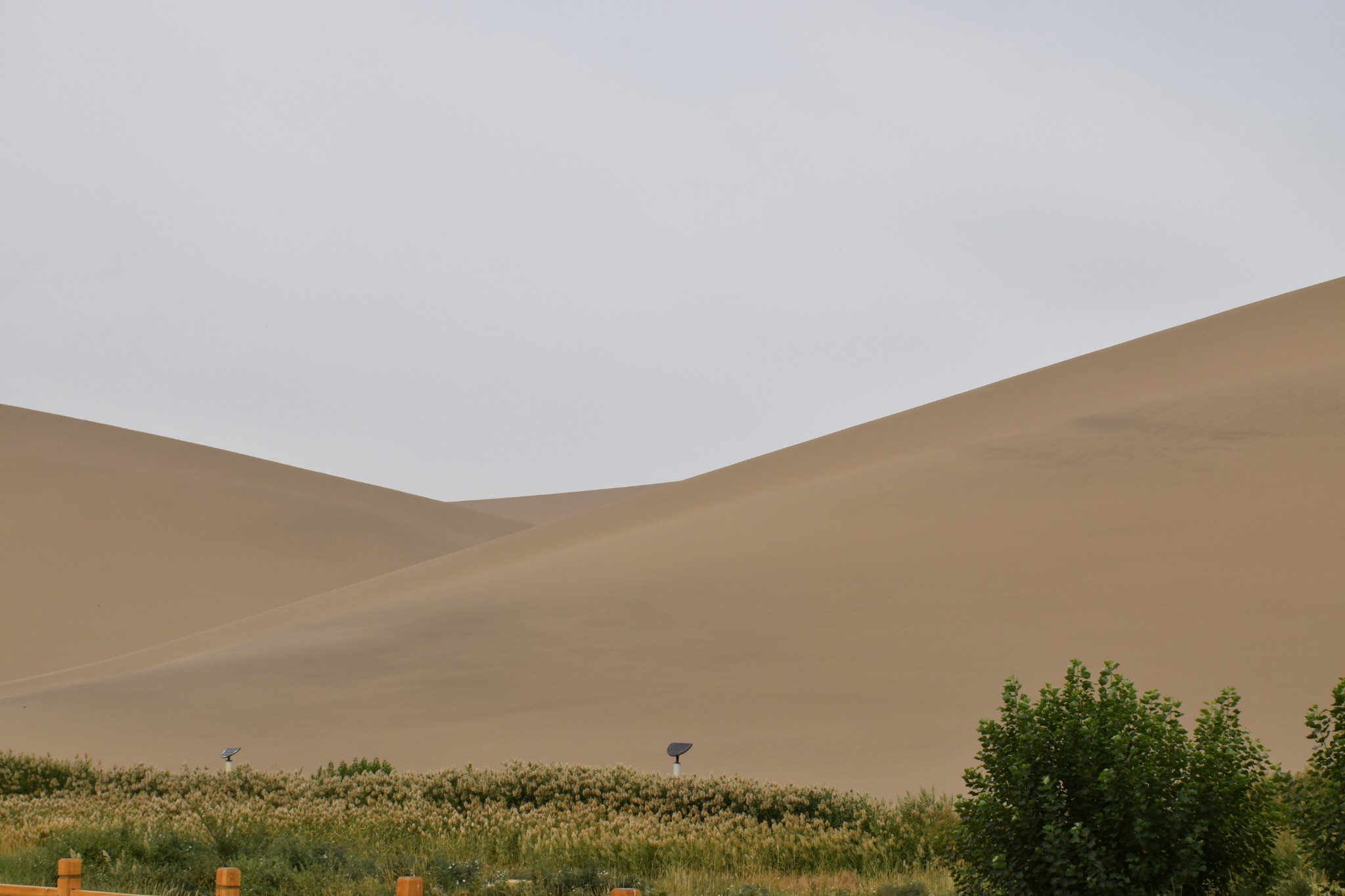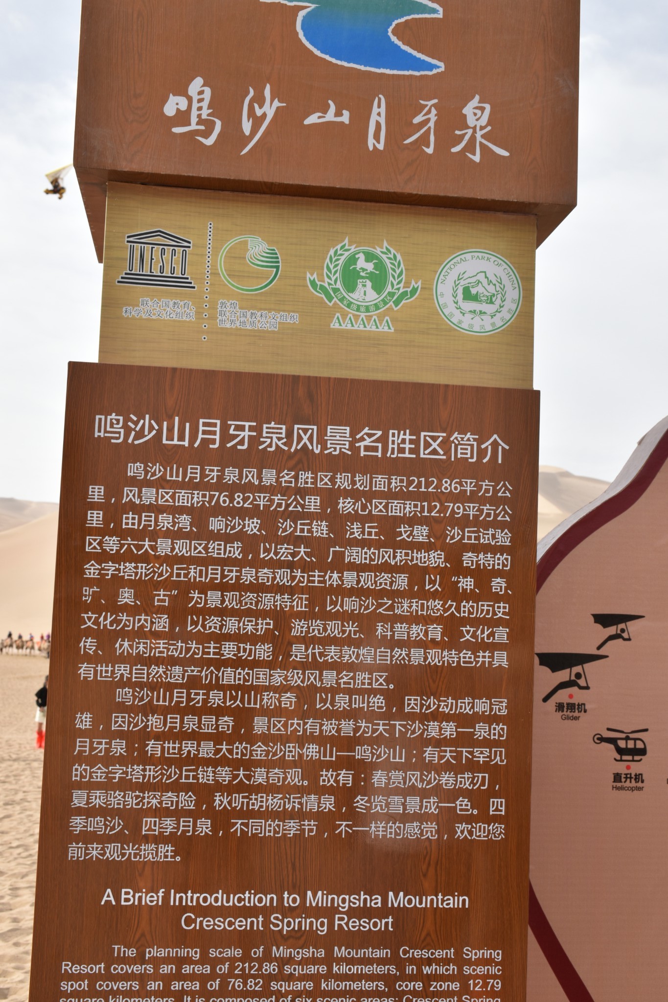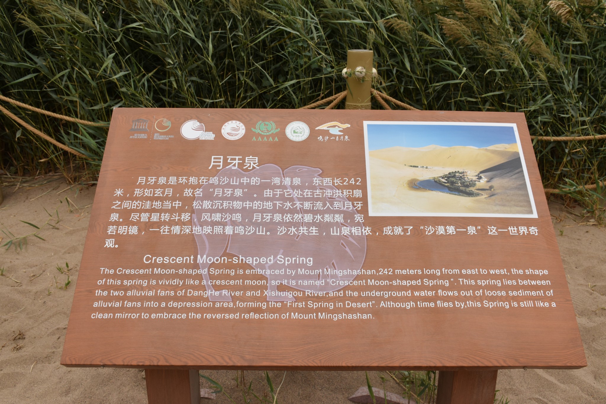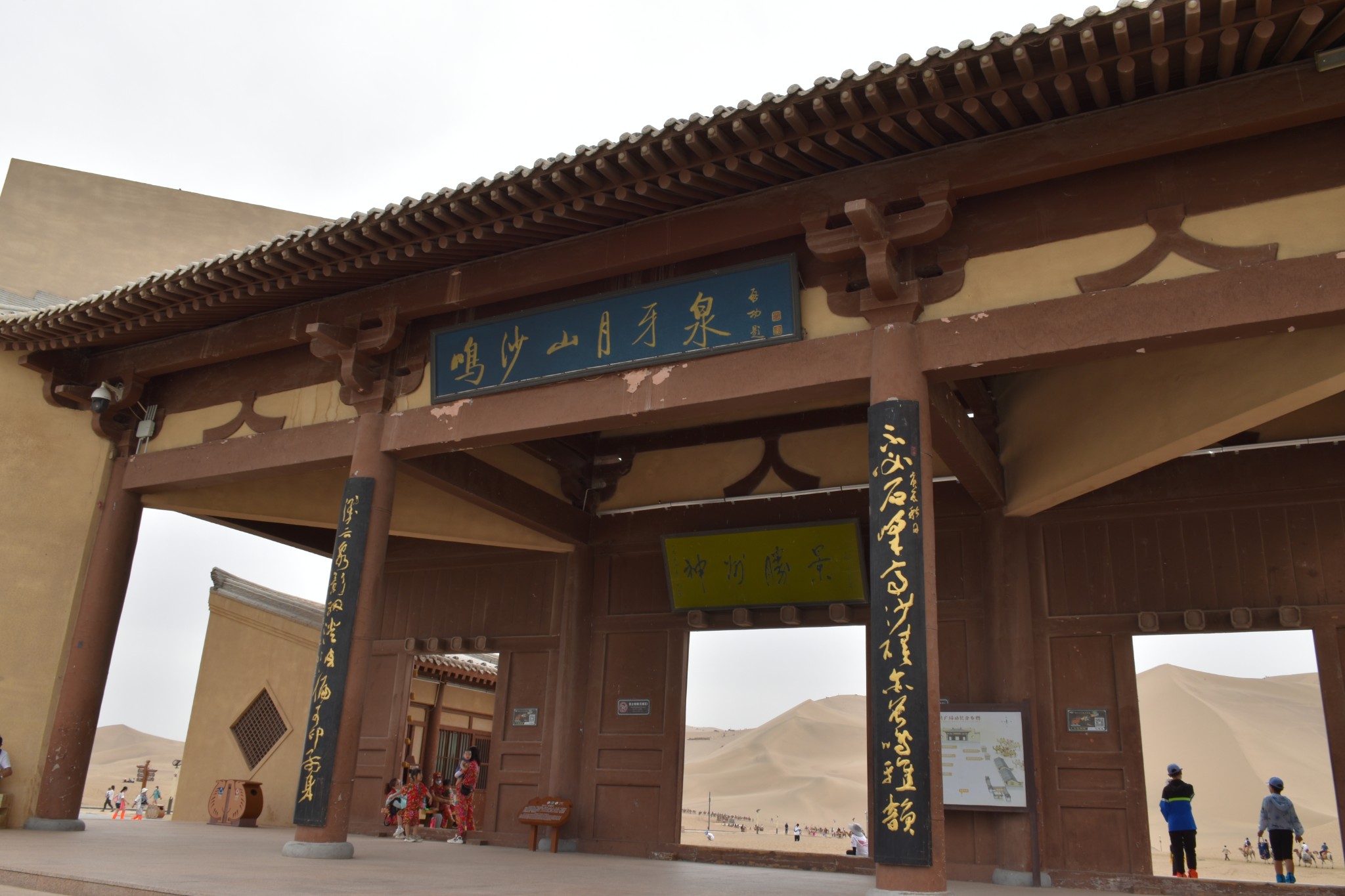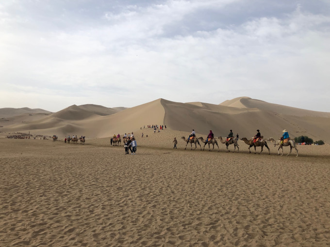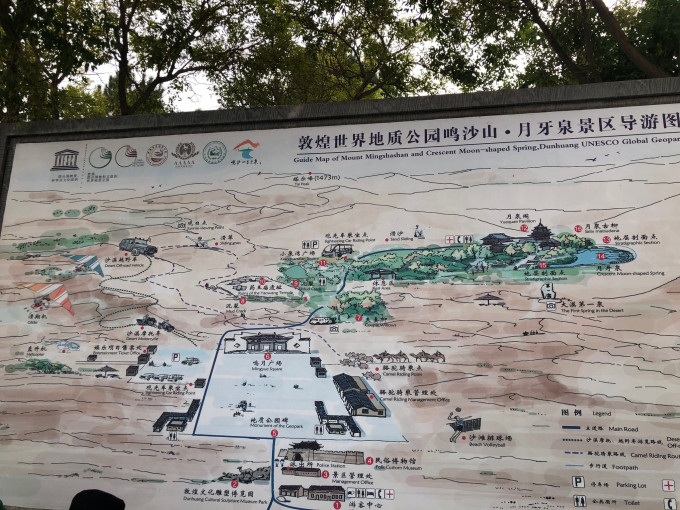 如果想各种沙漠探险,就往左边走,各种玩,如果你想只是欣赏风景,就往右边走,鸣沙山、月牙泉都在右边,可以踩着沙子过去,进入到木栈道。