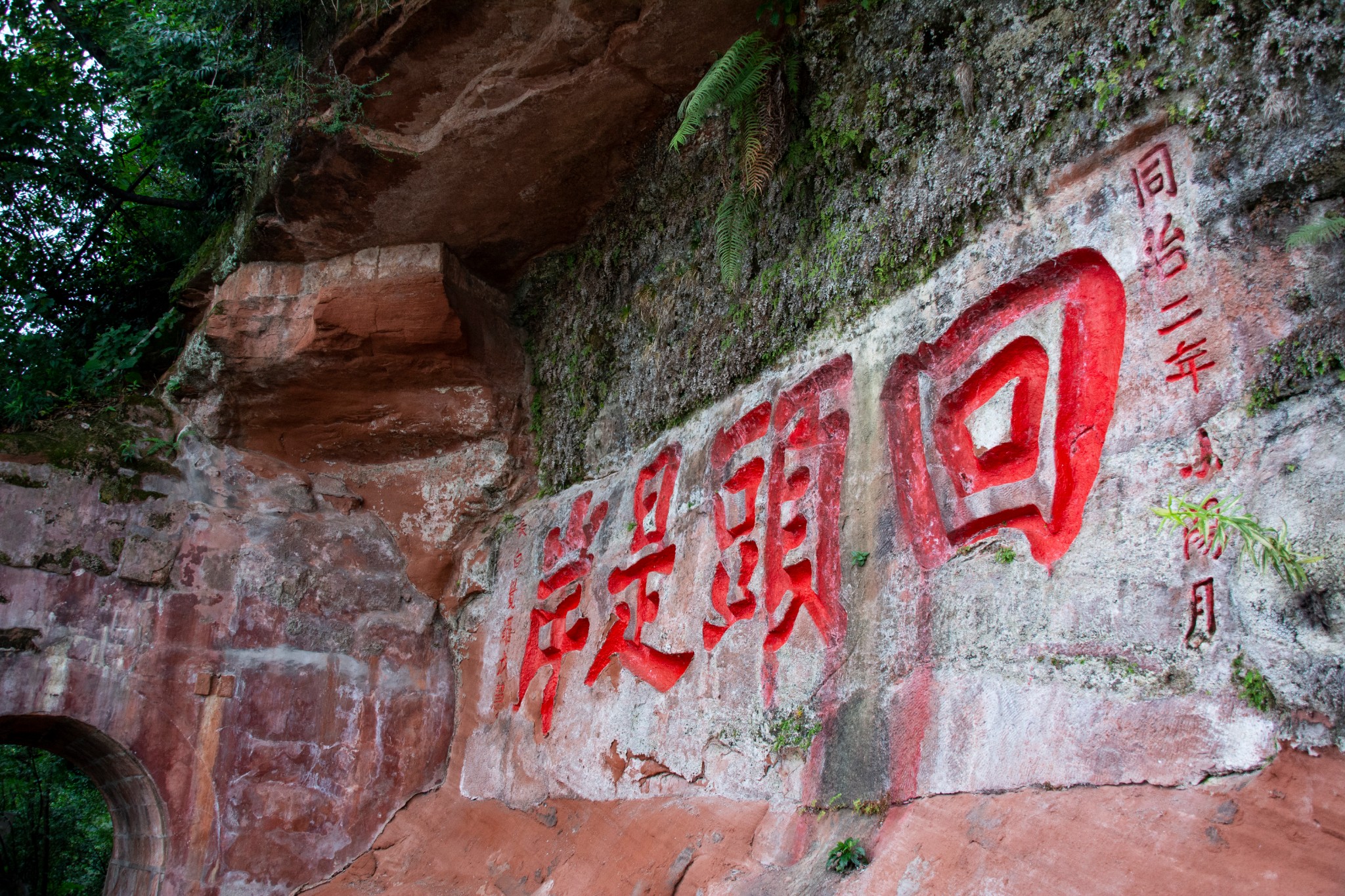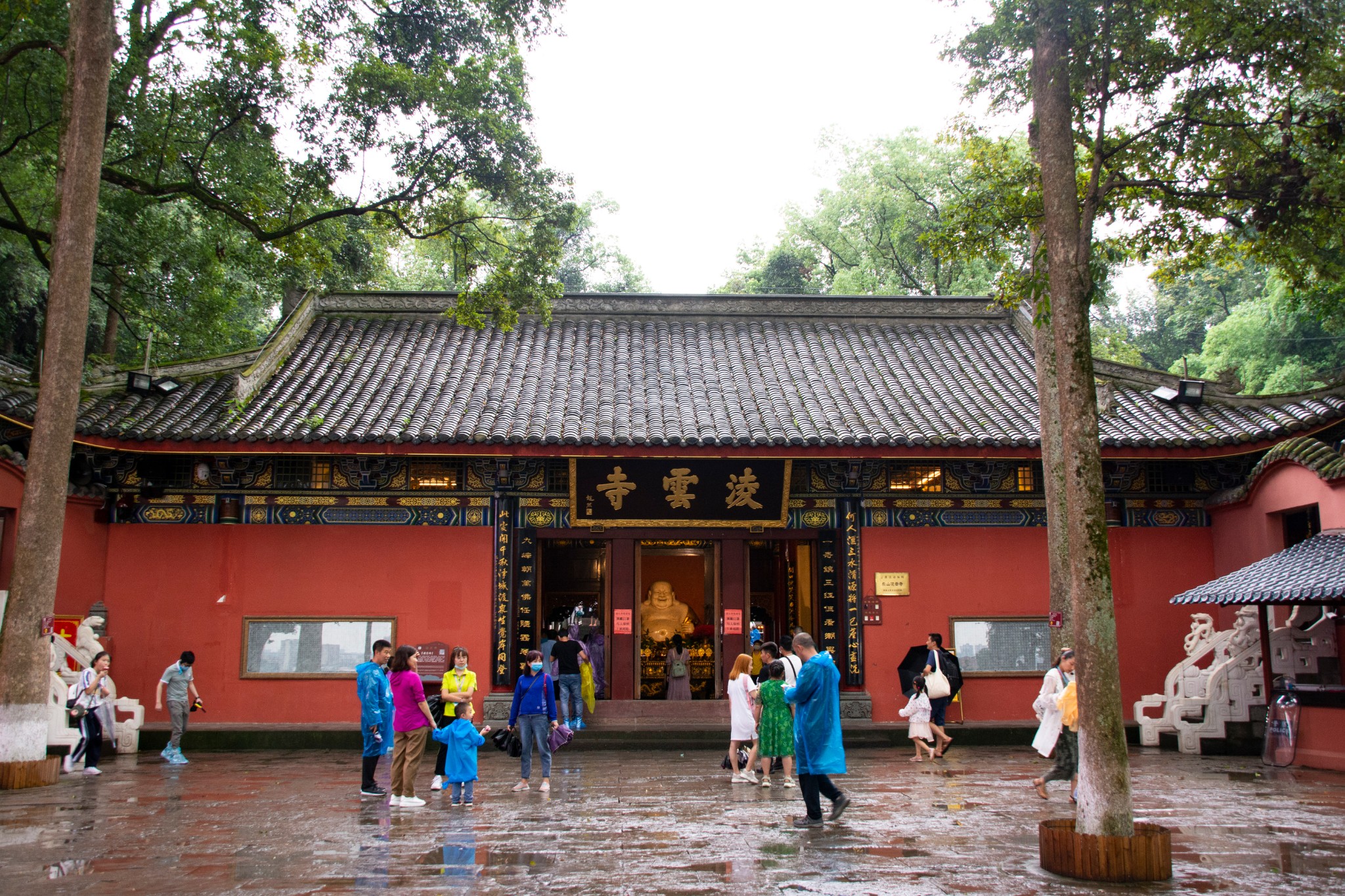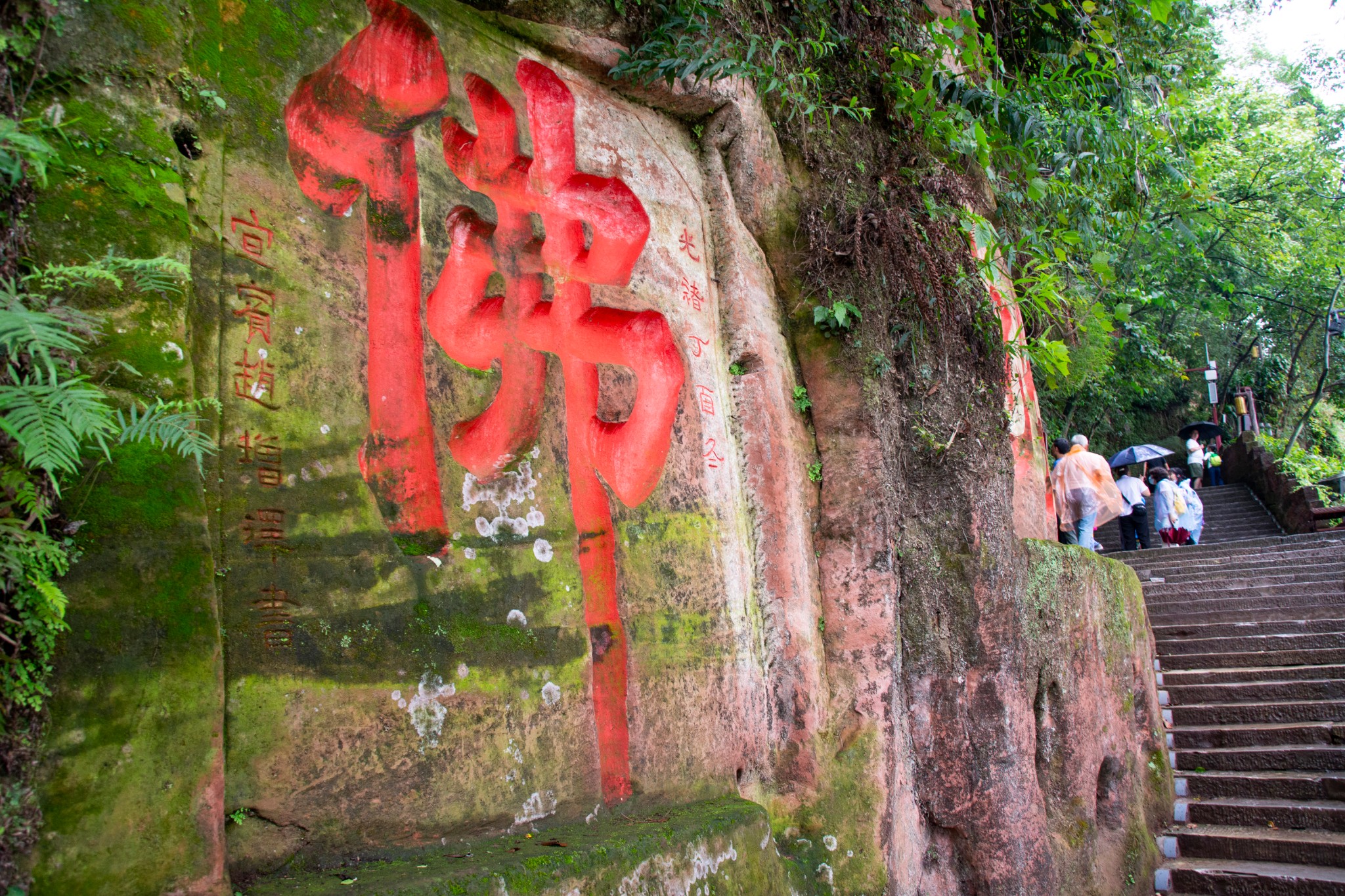 刚上山,文人骚客留下的书法石刻还没欣赏几幅,又下起了小雨,紧张的肥妻连忙拿出雨衣让我穿上,我当然拒绝,穿着雨衣拍照一点都不方便,而且只是毛毛雨,雨中登山,临江挥手,这种情景不常遇见,廉颇老矣,尚能指点江山,这感觉好得不要不要的!没多久,雨停了,兴致一下子又仿佛跌到低点,想起过往种种淋雨的情景,又想起吾友蒋捷的那首《虞美人》:少年听雨歌楼上。。。一时间诗兴大发,模仿好友的词,也作一首以抒胸怀:“少年淋雨马路上,女友真混账;壮年淋雨搬砖中,双眼迷离摇摆就西风。 而今淋雨乐山下,鬓已斑斑也,悲欢离合烟云轻,一任阶前打脸到天明。”不要跟我杠什么平仄,不要跟我杠什么韵味,如果不是一直淋雨多,脑子进水满得都流出来,我早就真正的指点江山了,还会是现在这种资深猥琐油腻大叔抓住为数不多的机会装腔作势?唉,再过几年,连大叔都不是了,要自动进阶成糟老头了,是我说得太多了吗?怎么脸上全是雨水??