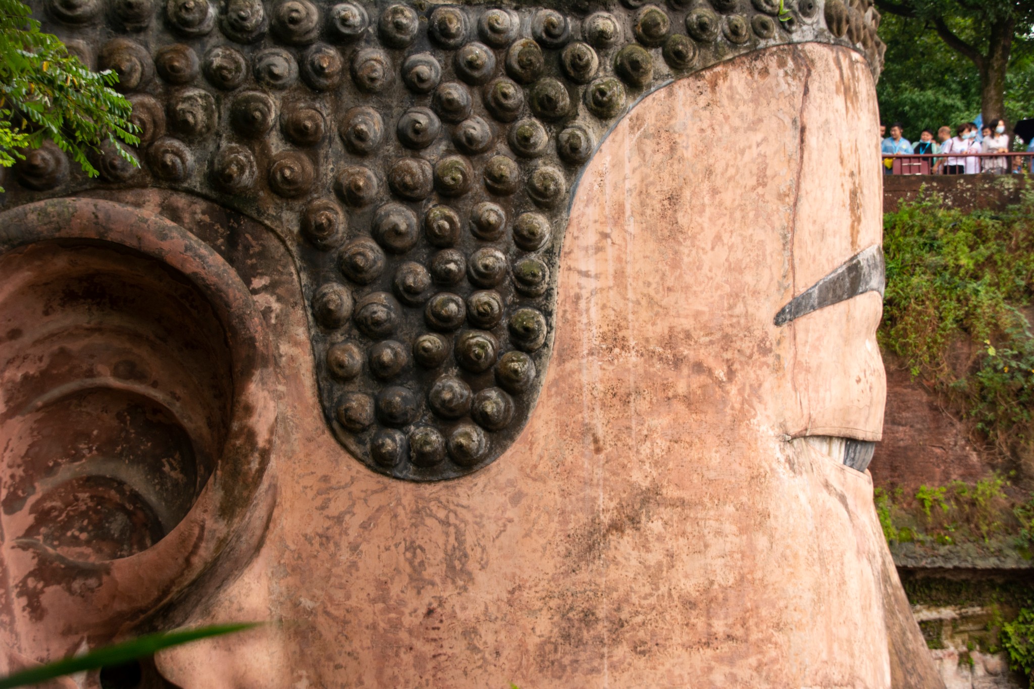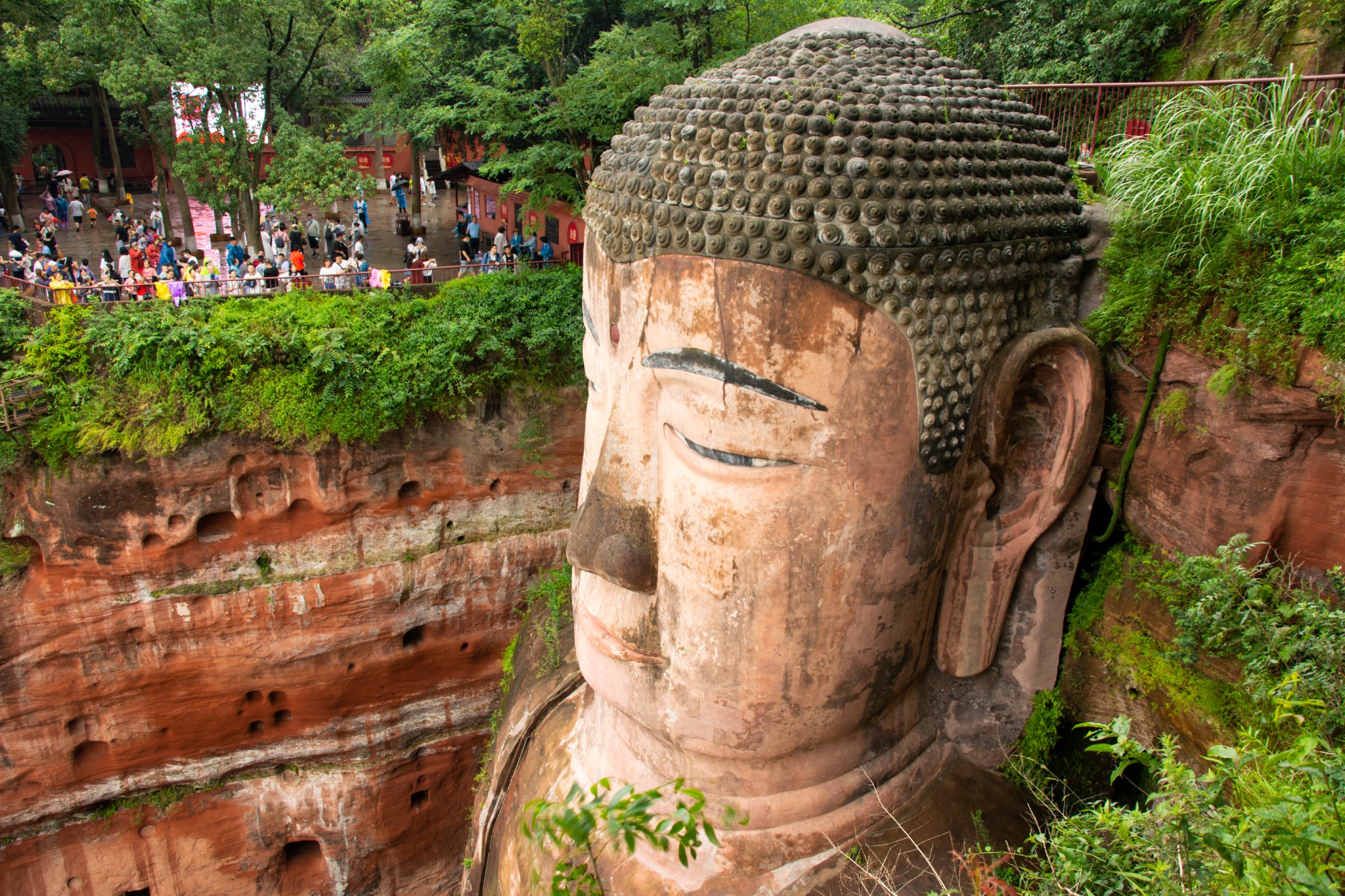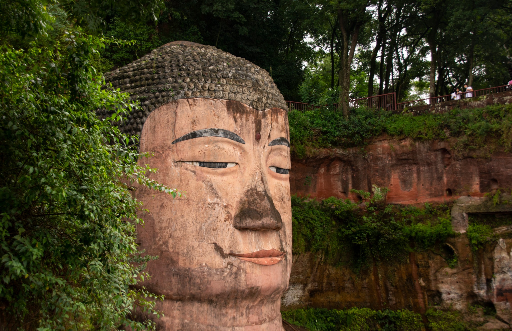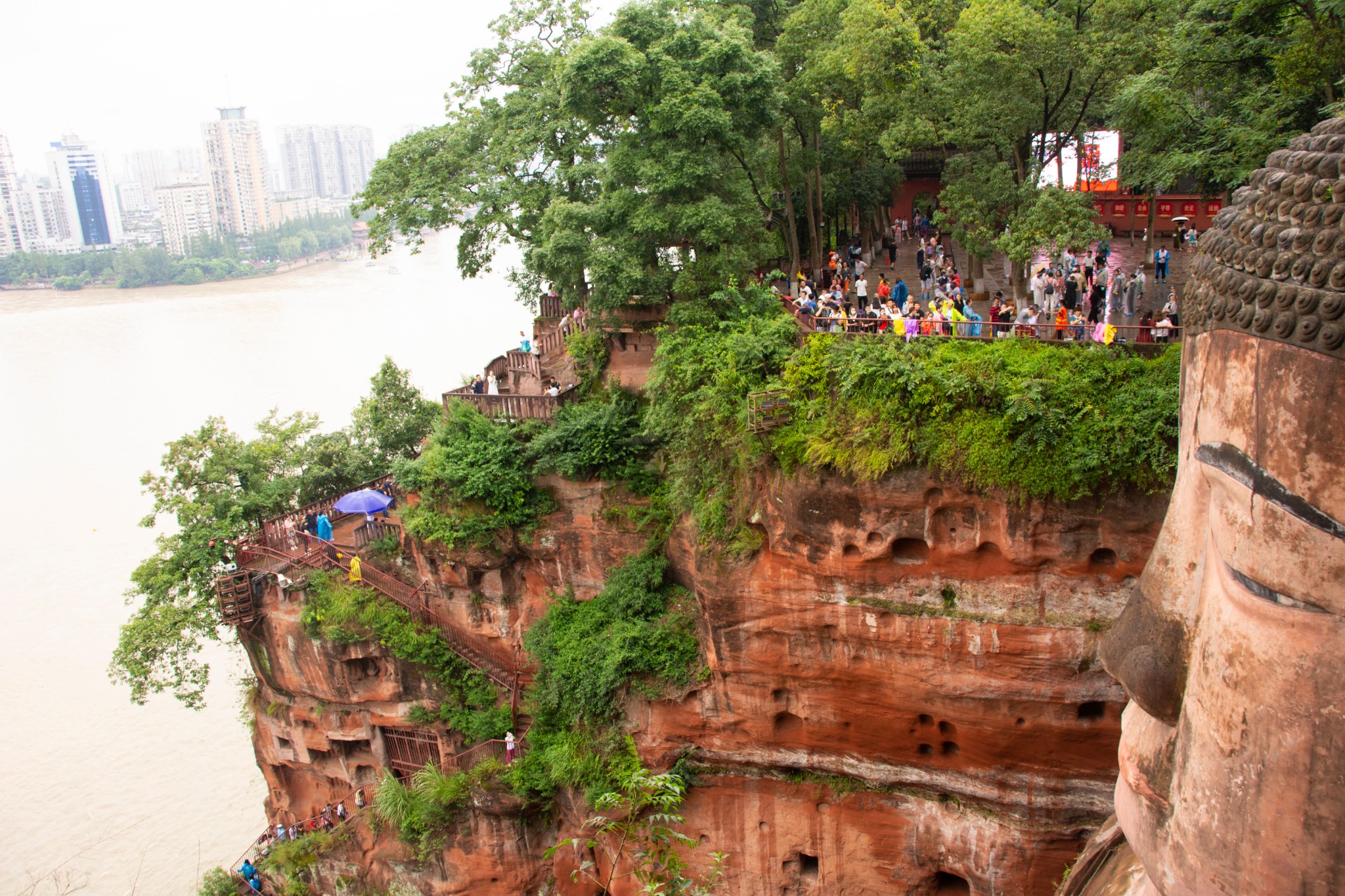 天气预报说这两天都有雨,趁着小雨时下时停,所以和胖哥汇合后就直奔乐山大佛。我们没有选择坐游船观看这种没有一点技术含量的路线,而是直接爬山,近距离仰望亲近小时候电影里深刻脑海的凌云大佛。