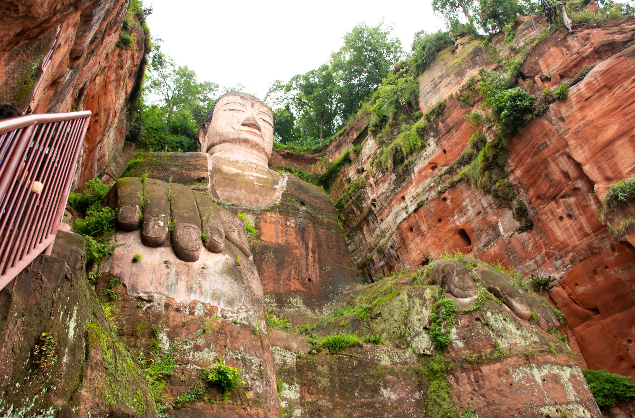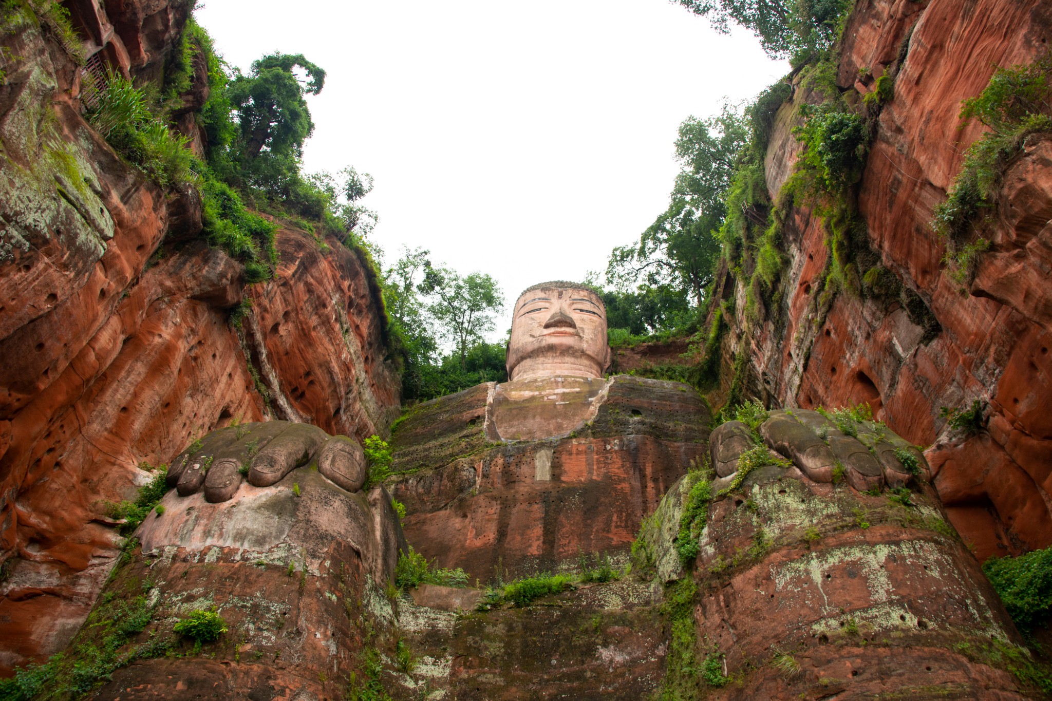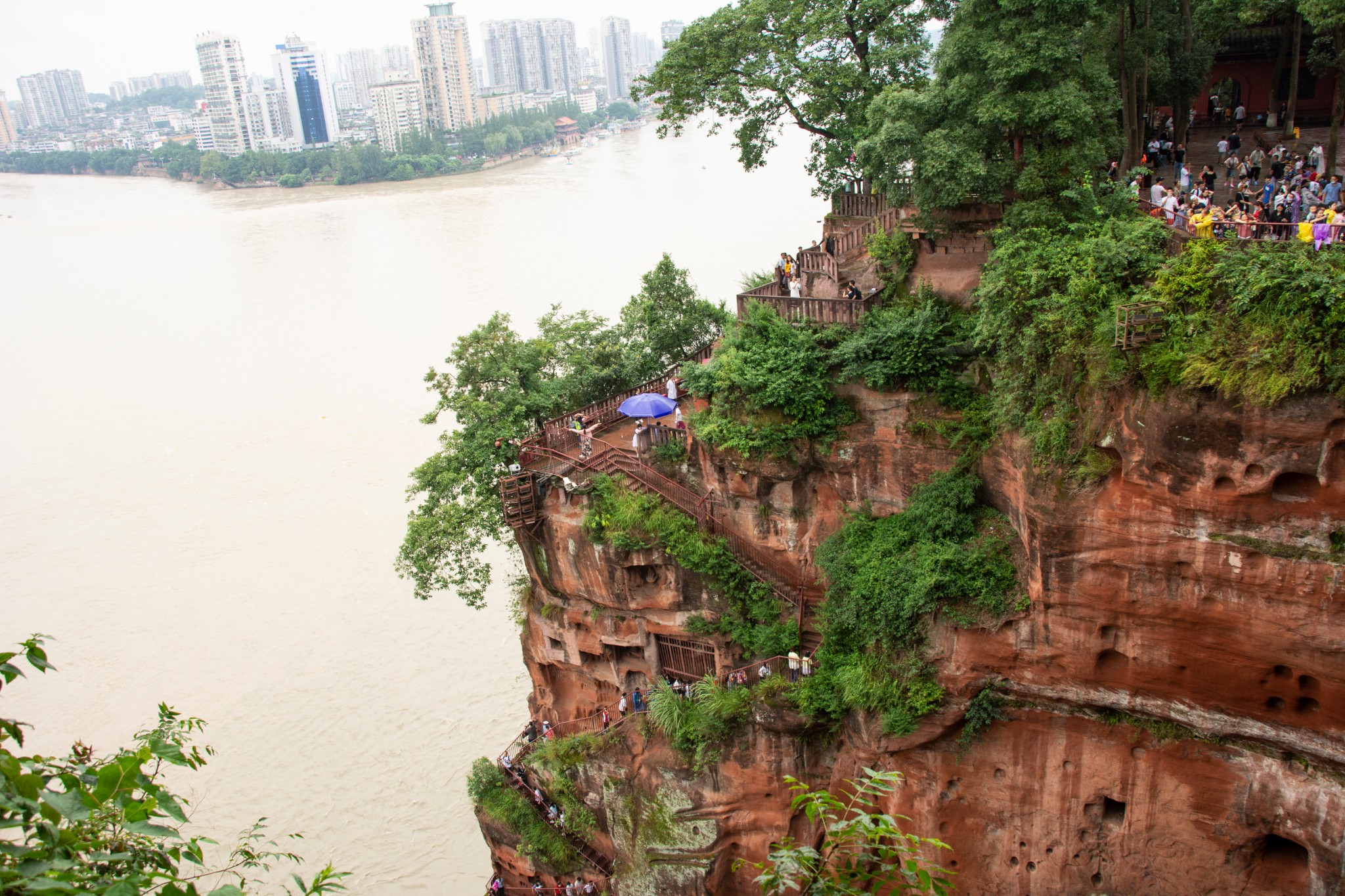 天气预报说这两天都有雨,趁着小雨时下时停,所以和胖哥汇合后就直奔乐山大佛。我们没有选择坐游船观看这种没有一点技术含量的路线,而是直接爬山,近距离仰望亲近小时候电影里深刻脑海的凌云大佛。