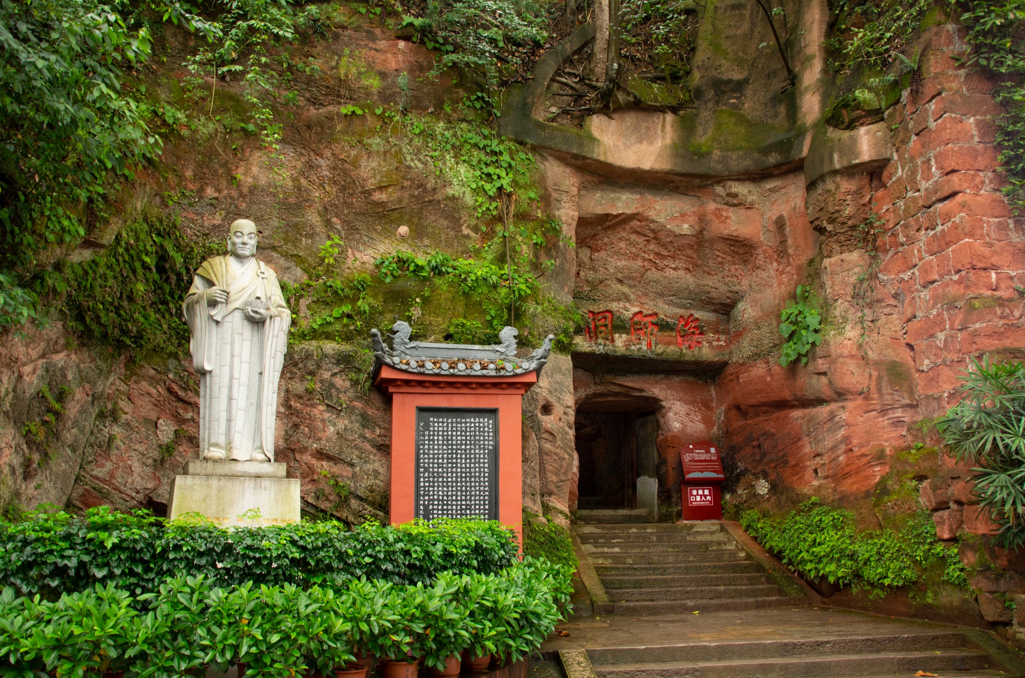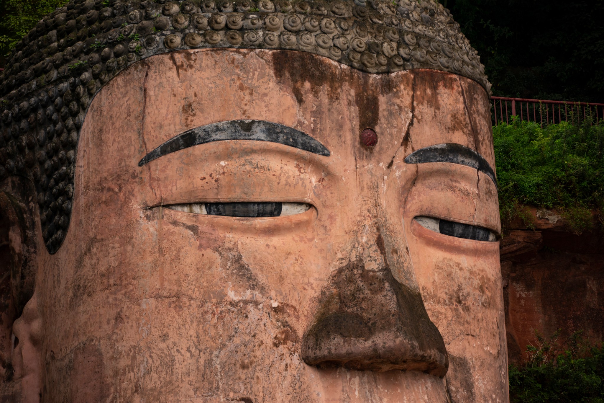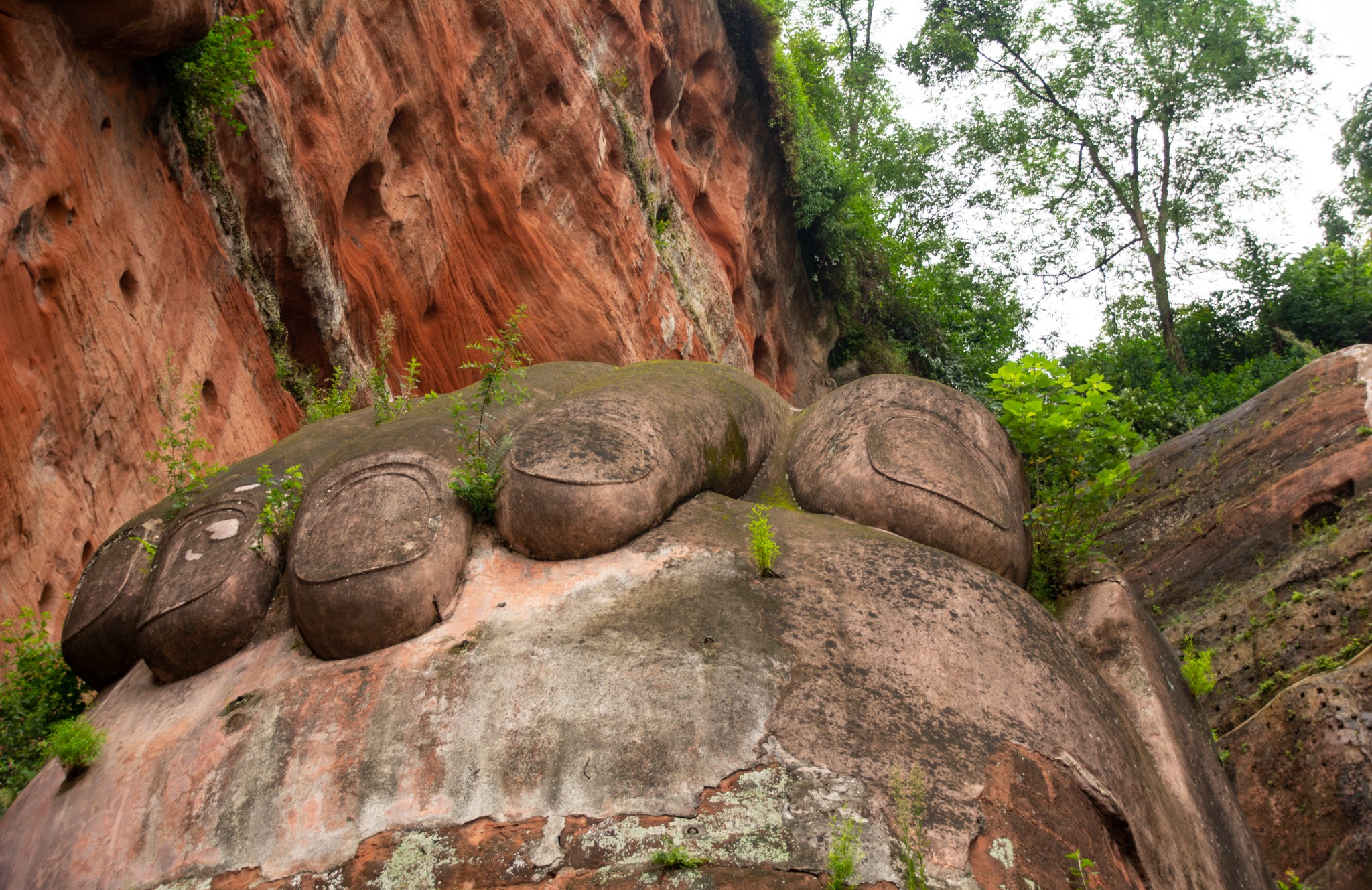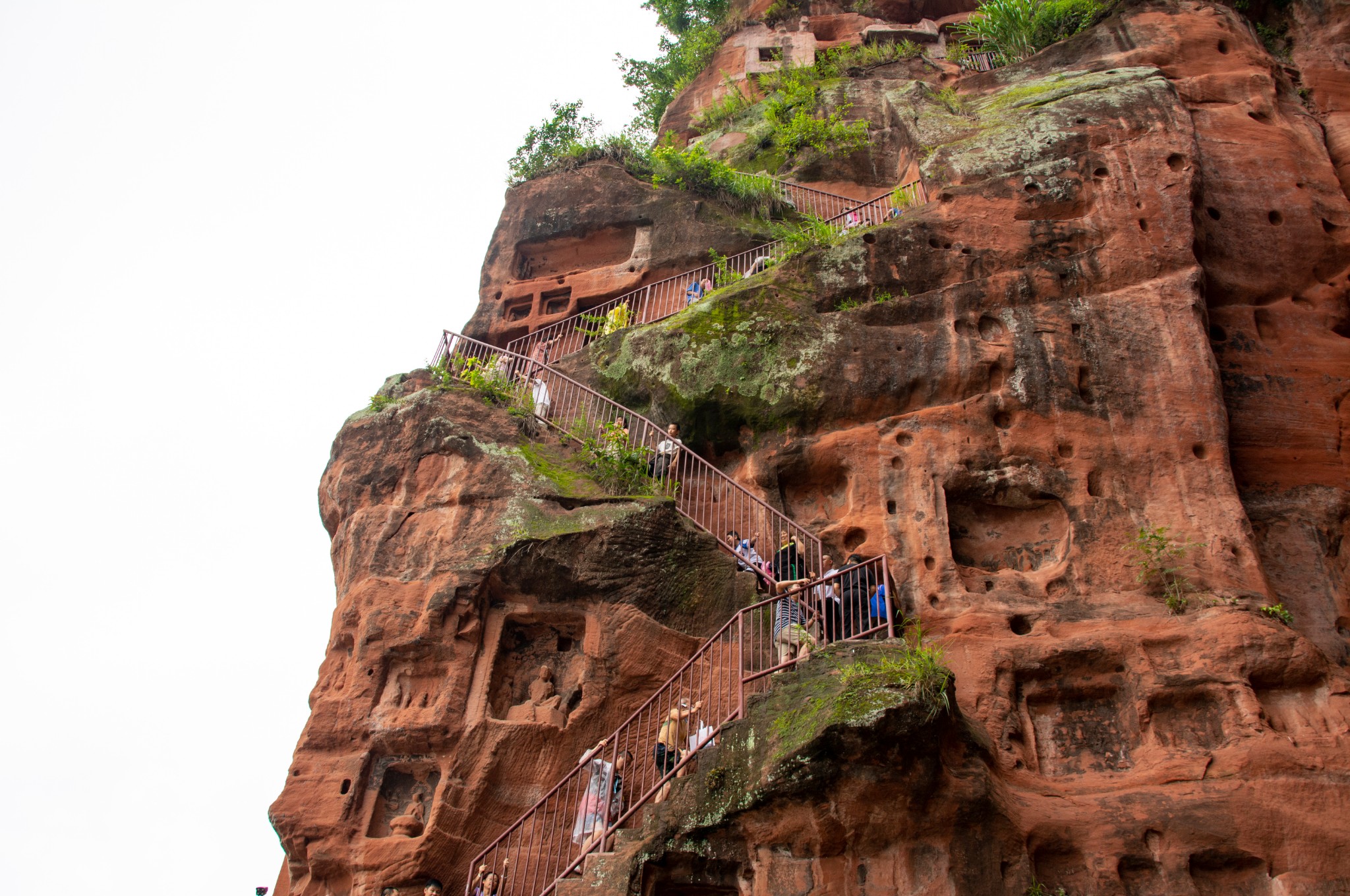 天气预报说这两天都有雨,趁着小雨时下时停,所以和胖哥汇合后就直奔乐山大佛。我们没有选择坐游船观看这种没有一点技术含量的路线,而是直接爬山,近距离仰望亲近小时候电影里深刻脑海的凌云大佛。