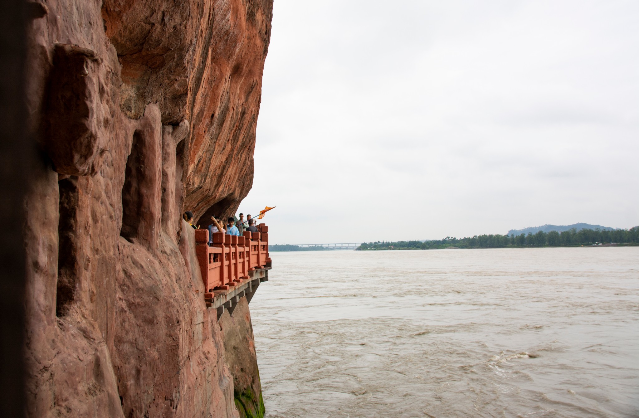 我一副众人皆醒我独装得道高人的模样,隐约的气势唬得小伙伴只能站在一旁等候,一番云游天外之后,实在装不下去了,才慢慢的前行。沿山开凿的小路狭窄陡峭,肥妻对于这座修于唐朝开元年间的弥勒大佛没有过多的提问,可能是做攻略时有所了解,又或者是去年暑假在嵩山和洛阳时得到了恶补,更多可能是现在问的再多也记不住,明天该忘的不该忘的都会忘记!来到大佛脚下,离汹涌的江水不到一米,浪声震耳欲聋,才感到这奔腾的气势,再仰望大佛,除了雄伟、庄严、威武之外便找不到什么更好的形容词了。人在滔滔江边,弱小如草芥,站在巍峨大佛下,渺小如蝼蚁!高度真的决定眼界!膜拜之后登九曲栈道,每一个转折我略作停留,看看大佛,又看看大江,每升高一层,心境也随之豁然开朗一些,到达最高点,王八之气油然而生,高度真的决定心胸!