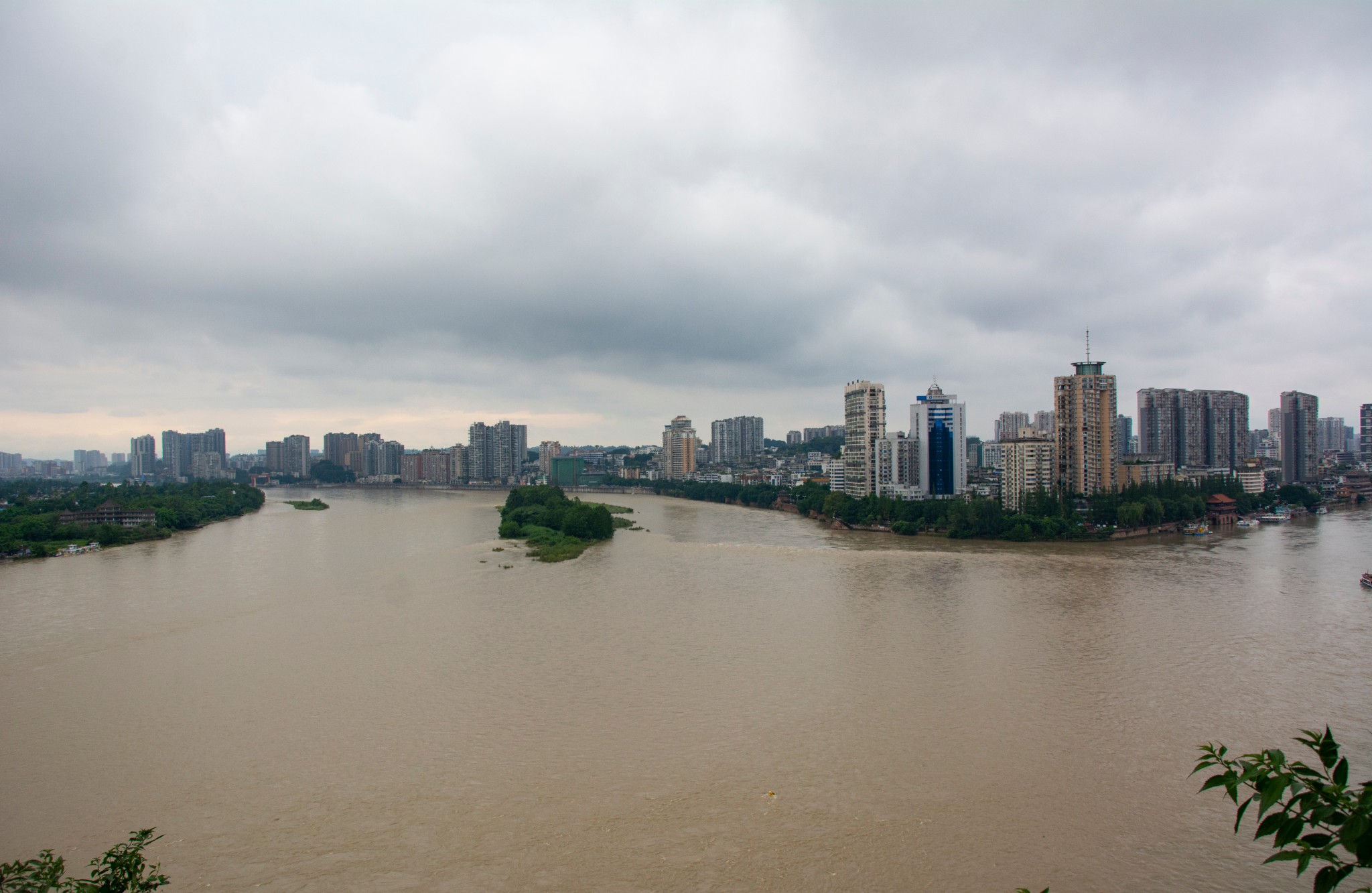 走着走着,就到了乐山大佛头部旁边的山上,乐山大佛有“佛是一座山,山是一座佛”的美誉,所以佛像头部就是山顶。我站在佛头旁边,与佛像一个方向,模仿着佛像的神态,双眼微睁,嘴角微开,如拈花般似笑非笑,当然是没有一点神似,更没有普度众生的胸怀和能力。面前是岷江、青衣江、大渡河三江汇聚的地方,可能是这两天下雨的原因,土黄色的河水湍急,浊浪滔天,惊涛拍岸的声音响彻山间,而我却没感到丝毫的震动,登高山而小江河说的可能就是这种情况吧,人处于的高度就是眼界的高度也是心胸的高度,这话一点都没错,很多道理谁都明白,但不是谁都做得到!