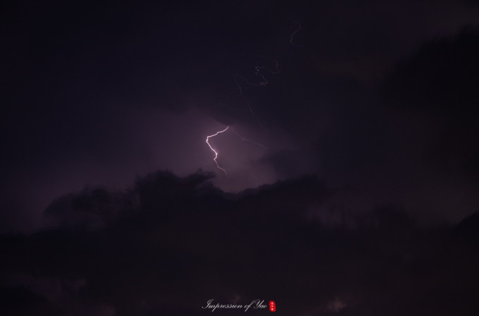 还没有拍几张,发现右边天边一闪一闪,起初还以为是灯光,随着闪光越来越频繁,甚至还伴有阵阵隆隆雷声,我才意识到可能要下阵雨了。
