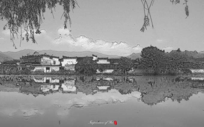 都说宏村如画,黑瓦白墙搭配烟雨天的水汽弥漫,简直是绝配,像极了一幅泼墨山水画。中国的山水画早已证明无需丰富的色彩,仅仅依靠丹青的颜色层次就足以表现景物和画面的韵味。