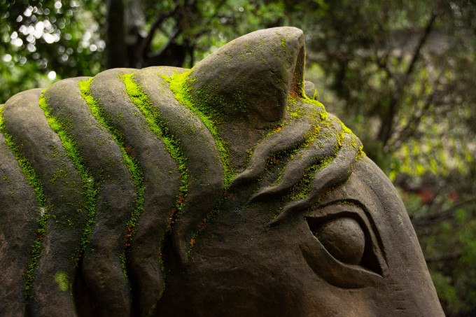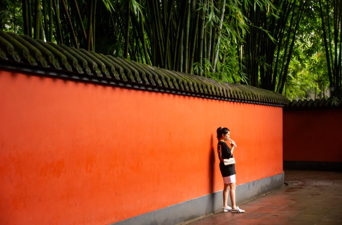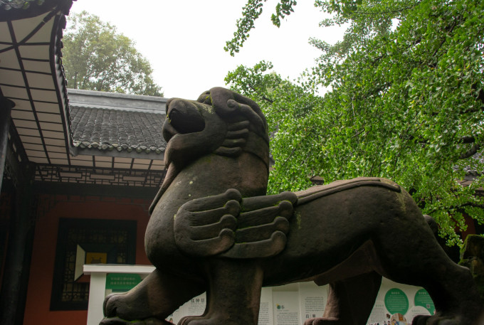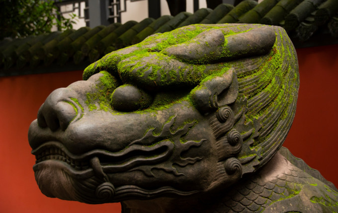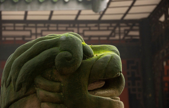 惠陵围墙现在成了网红拍照圣地,可惜扎堆的人群,嘈杂的声浪让圣地变成了绝地,好景拍不好,对于爱拍照的我来说确确实实是绝望之地!放弃了大众视角的红墙,,把目光转移到神道的神兽上面,却发现意想不到的美,特别是神兽身上的青苔,与石像的黝黑形成了新鲜古旧,黑白彩色的对比,视觉冲击极为强烈!抬眼望,瓦面上也是青苔密布,间隙处小草顽强冒出。。。“映阶碧草自春色”。。。诗词弹幕又自动乱入!平常储备就那么多,而且几乎都是不完整的,今天倒好,全跑出来做弹幕了,可气的是连屏幕都占不满!却重复弹出!!出了武侯祠,不禁长叹:“出师一表真名世,千古谁堪伯仲间”,怎么还没完?再游武侯祠,印象依旧模糊!