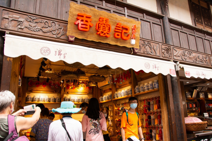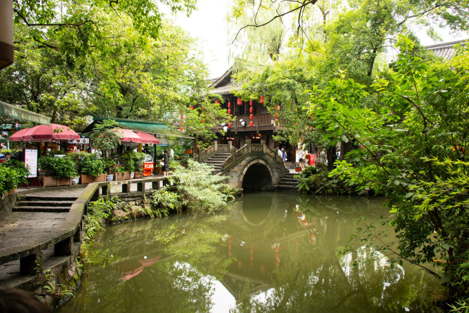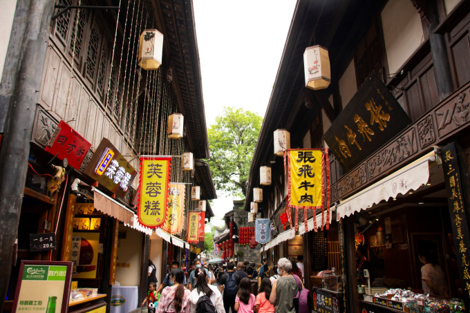 武侯祠旁边就是锦里,商业步行街。锦里很大,巷子曲折如迷宫,有些转角宽阔,还配有小桥流水,食肆小商铺数不胜数,行为艺术,唱大戏的也不少,人声鼎沸。胖嫂母女最大爱好是买买买,一到这里就像到了伊甸园、乌托邦、桃花源,瞬间没了踪影。集中营里商品虽不是千篇一律,但勾不起我半点的购买欲,今天周六,人比较多,还好没到拥挤程度,不然我更觉压抑。无聊极处,胡思连连,忽然觉得这锦里就像初恋,曾经爱过,和平分手,之后不想相见,但也不怕相见,一点点不自然,又达不到尴尬的地步。这种不适没有持续很久,因为胖嫂是买买买,坚决果断,不是看看看,闲极无聊!