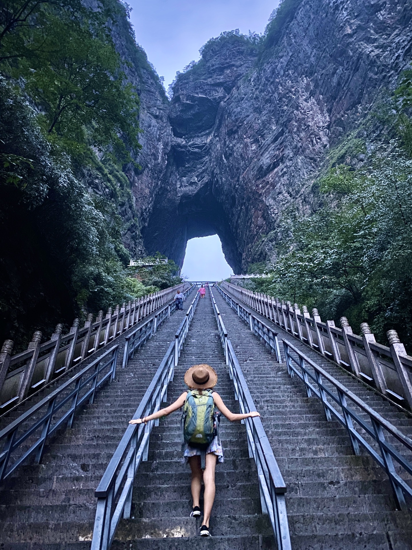 路线: 小索道上山(或者99道拐上山)➡️天门洞999级阶梯➡️穿山扶梯➡️西线(看图)➡️天门山大索道下山