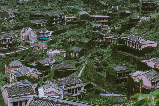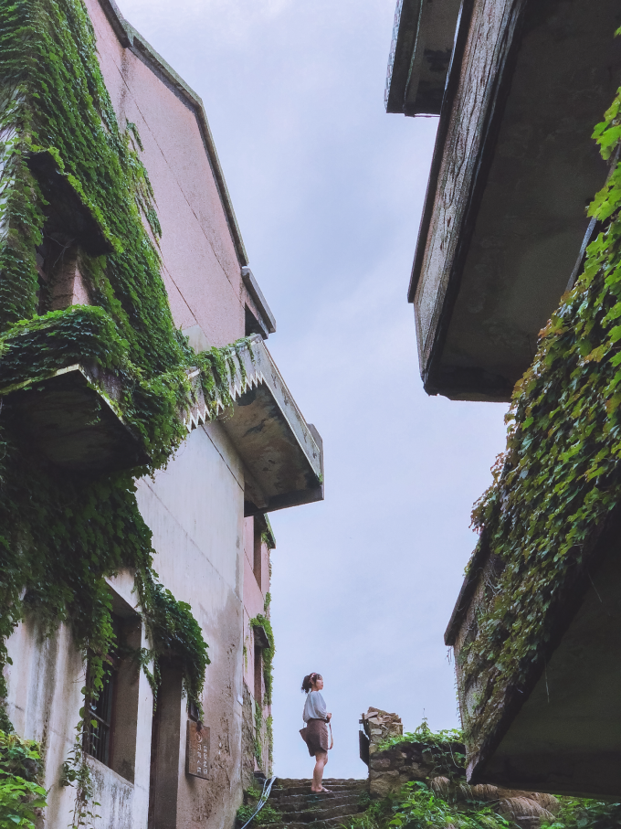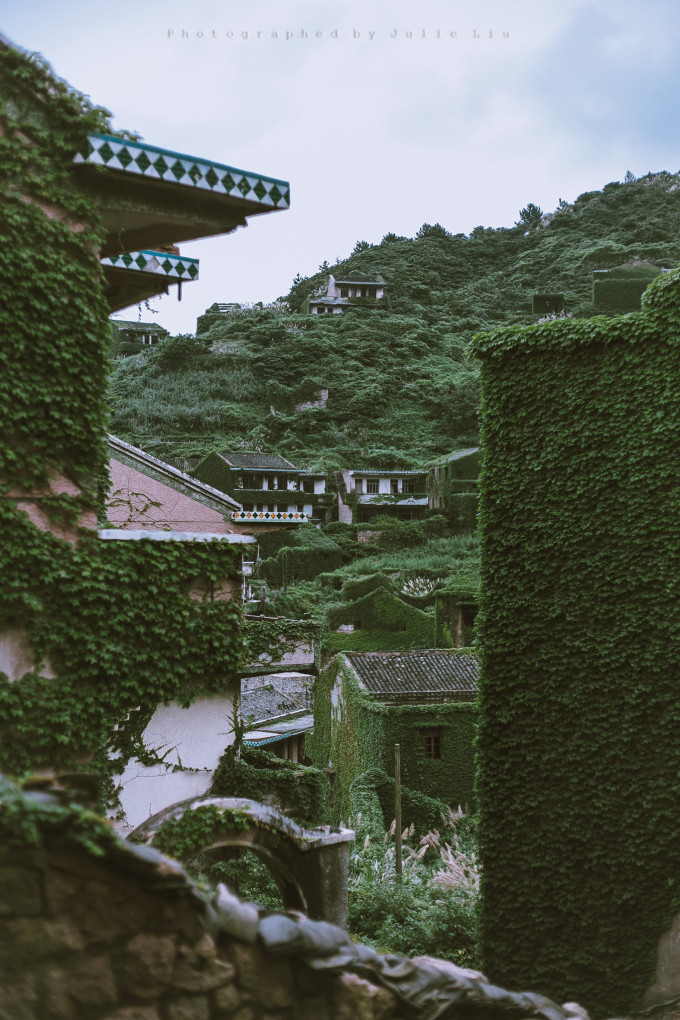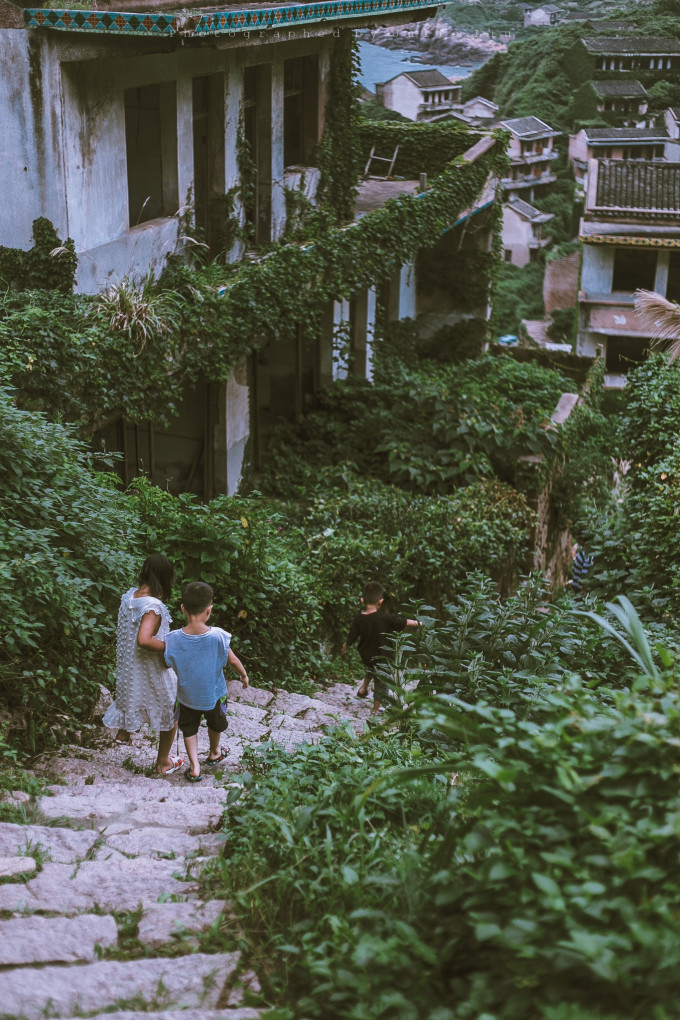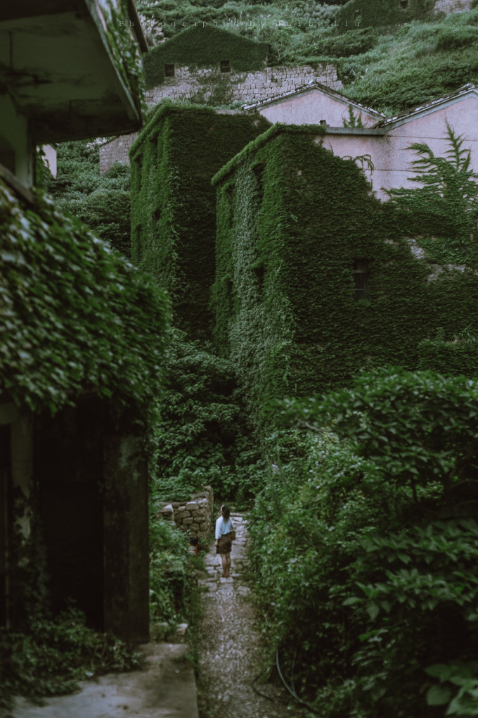 过了坟地就是无人村入口。无人村本名叫后头湾村,是个比较富裕的渔村,村民搬空后,无人打理的楼房渐渐被生命力旺盛的爬山虎覆盖,像似披上了一层绿色地毯。本来大概就这么荒废下去了,结果被一群摄影师发现,这个村子突然成了网红。来一探究竟的人越来越多,当地政府干脆将这儿设立为景点,收益与村民按比例分配,成为另一道创收来源。