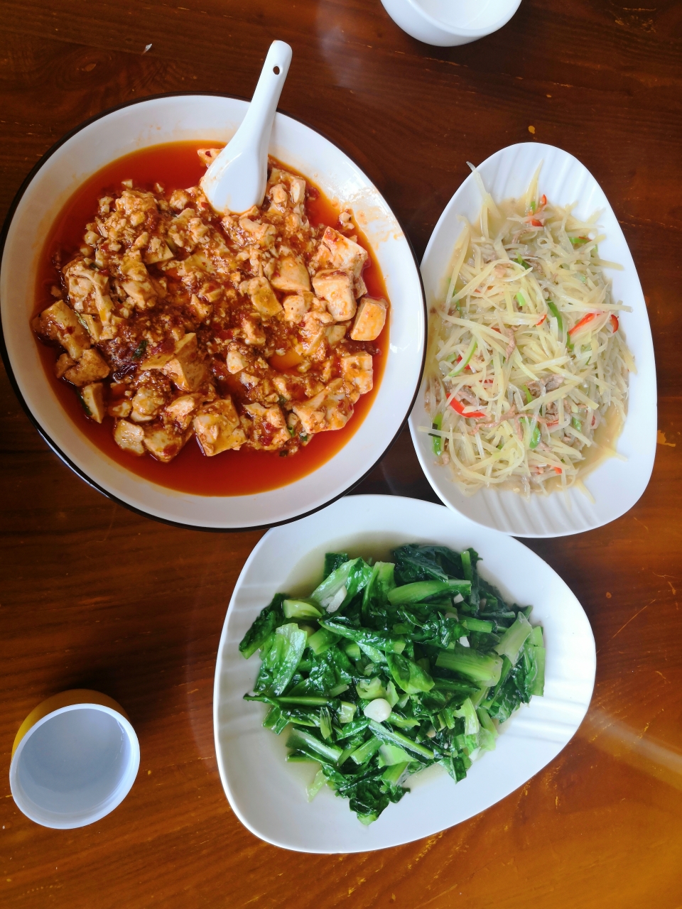 午饭就在山庄炒了几个菜,份量足,绿叶菜就是本地种的,新鲜!