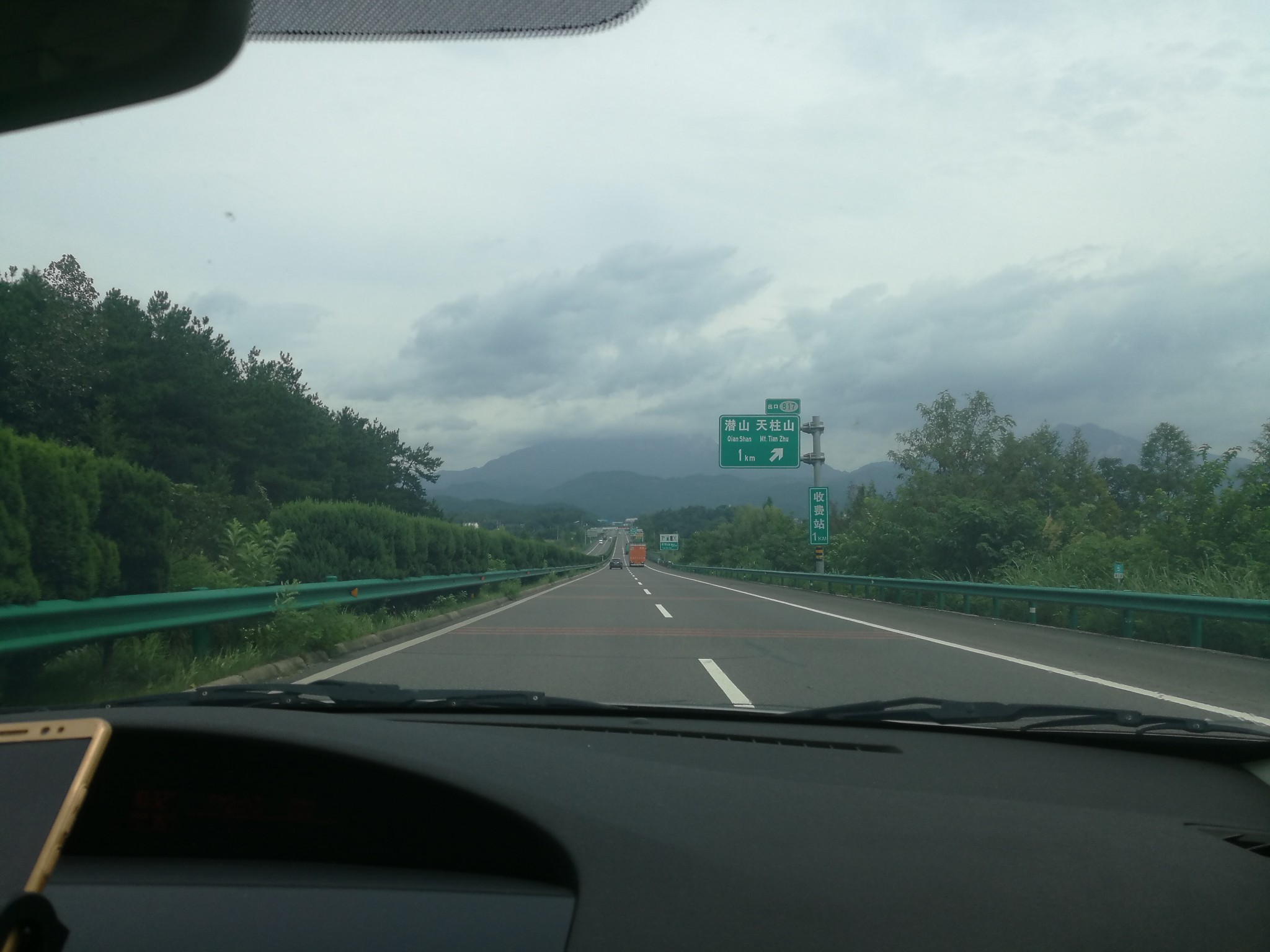 我们这距天柱山大概370公里,驾车要四个小时左右。早上5点50就起床了,吃完早饭7点不到出发。