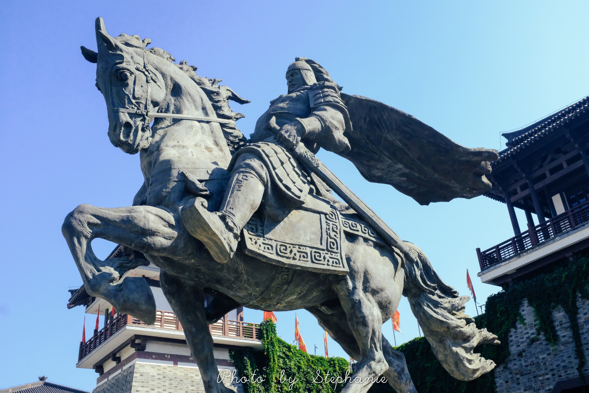 城门正中的项羽踏马而来,样貌威武,英气风发。历史上的项羽,也确实是一个勇猛无比的战神,天生自带主角光环。在历次战斗中,“力拔山兮气盖世”的他,力敌万夫、胆气过人、鏖战巨鹿、激战彭城,他的出现,为中国历史掀起了一场别样的风云,写下了一段不朽的神话。