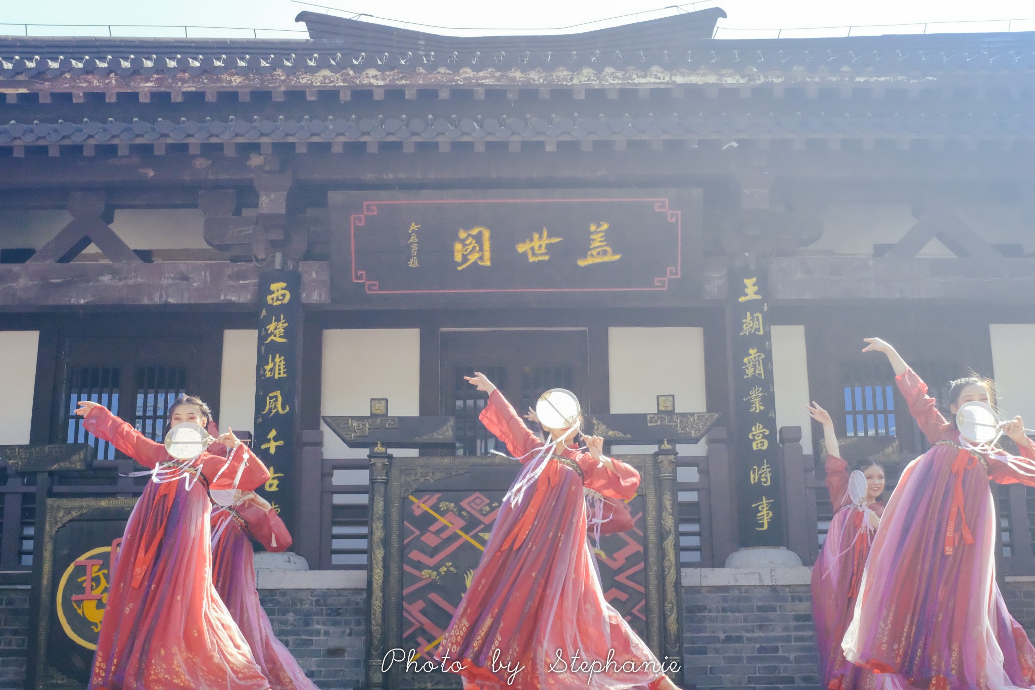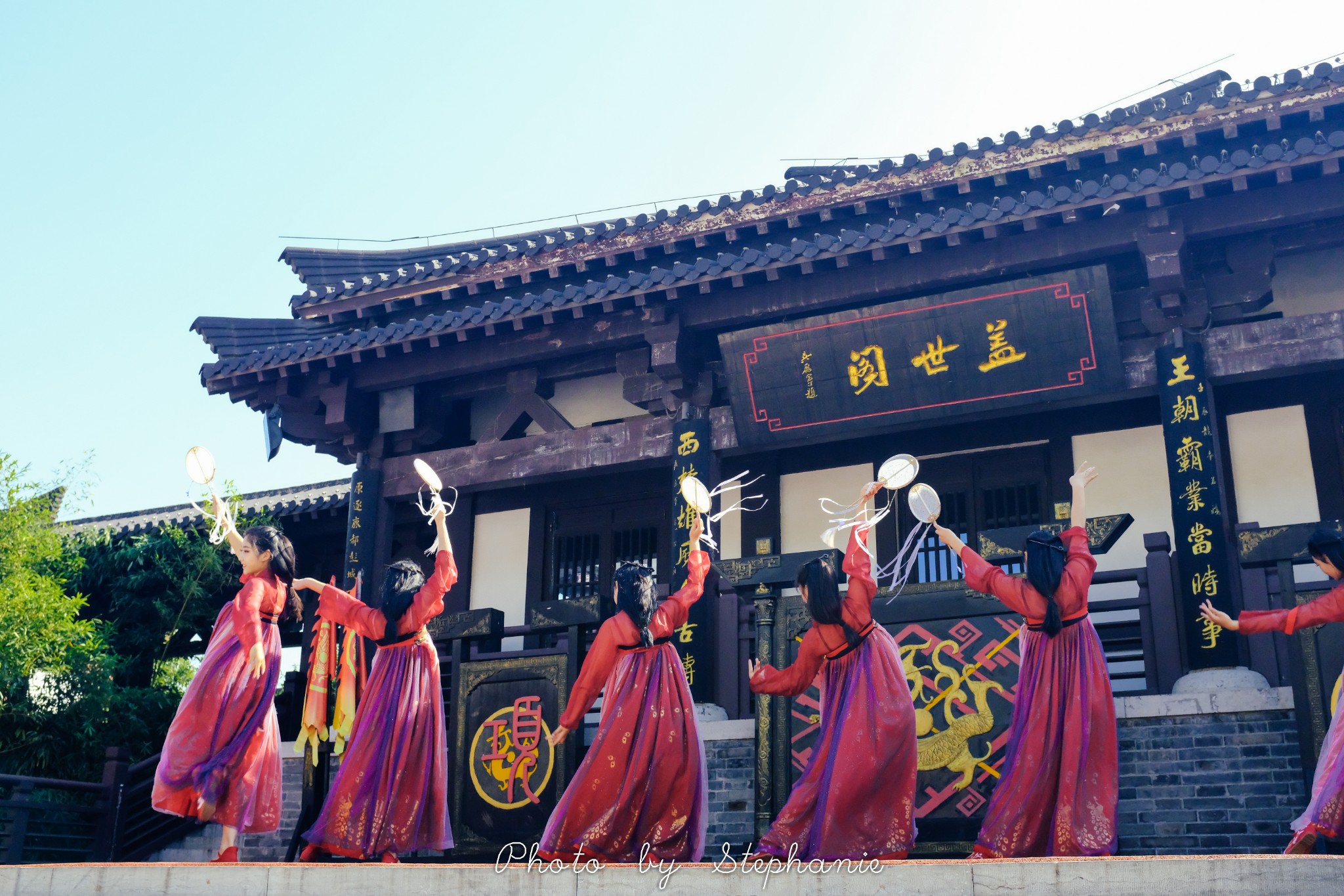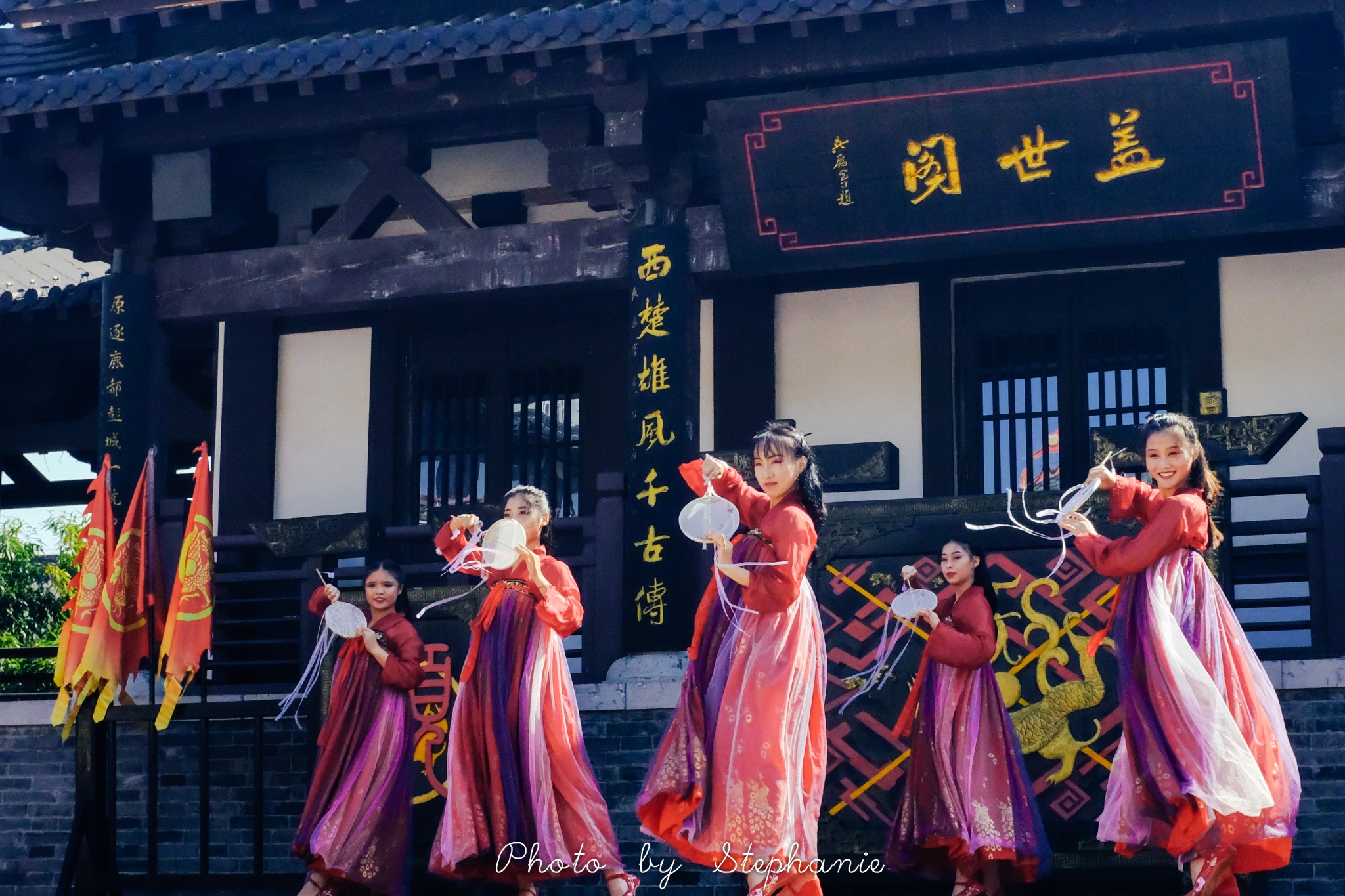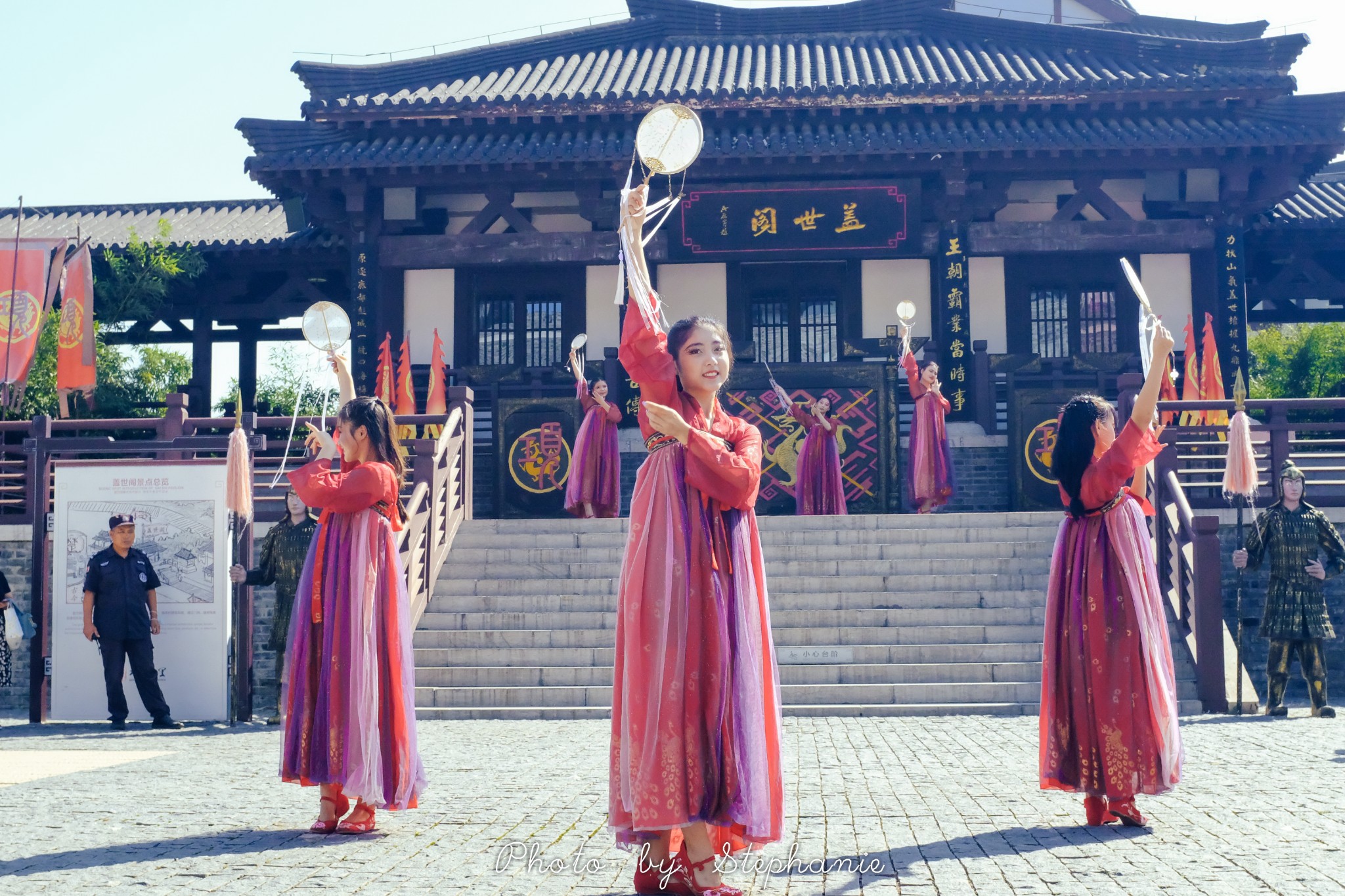 进城门后正对的就是盖世阁,9:10在这里有扇舞秀表演。