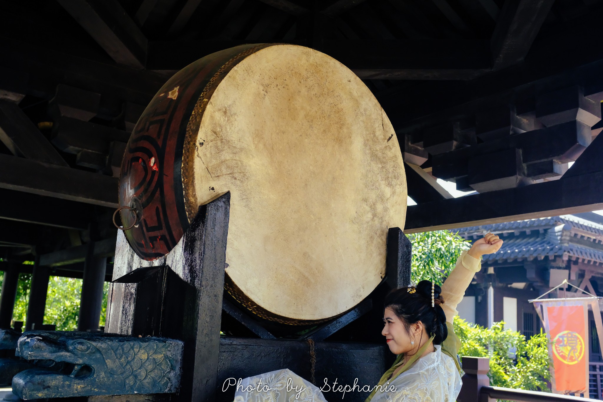 盖世阁的两边还有鼓楼,小女子当然要击鼓啦~