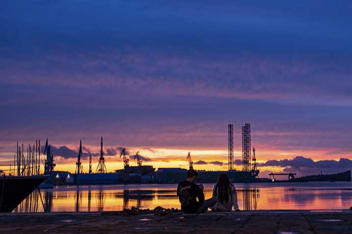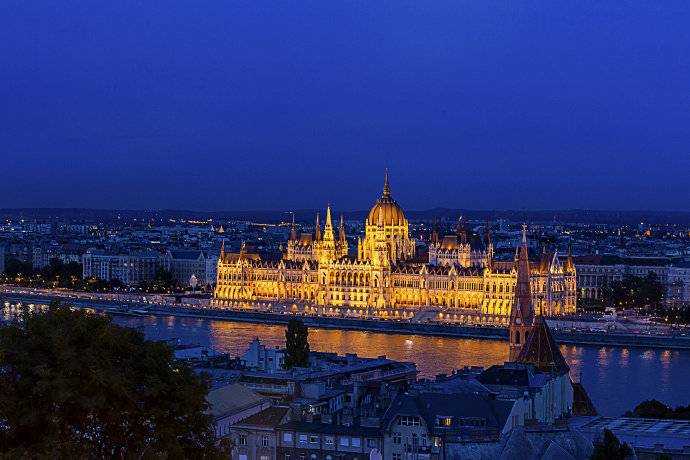 在那个美丽黄昏,我站在匈牙利布达的渔人堡上眺望对岸佩斯的匈牙利国会大厦,看着太阳从天边慢慢坠入地平线。太阳下山前的最后余光给布达佩斯染上华贵的黄金,然后是红色,最后是紫色。太阳西沉后,大地上泛起深邃的蓝把布达佩斯包围了起来,但城市里递次亮起的灯光也不甘示弱,在一点点地驱逐笼罩着的夜色,天空中冷冷的蓝调与暖和的城市灯光相互追逐,却又相互融合。这些灯光落在了城市的大街小巷里、落在了往来人们的身上、落在了多瑙河上,给蓝色的多瑙河渡上梦幻的色彩。