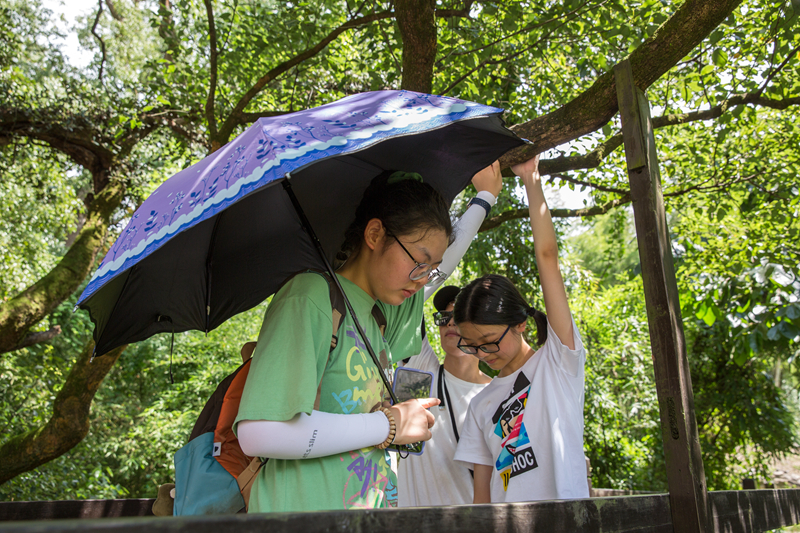 午后的阳光炙热,时有微风拂来,会消散些热气,间有树荫遮挡,如此走走歇歇,会不知不觉忘了酷暑炎热,让风景慢慢走进心里,正应了“闲心对绿水,清净两无尘”。