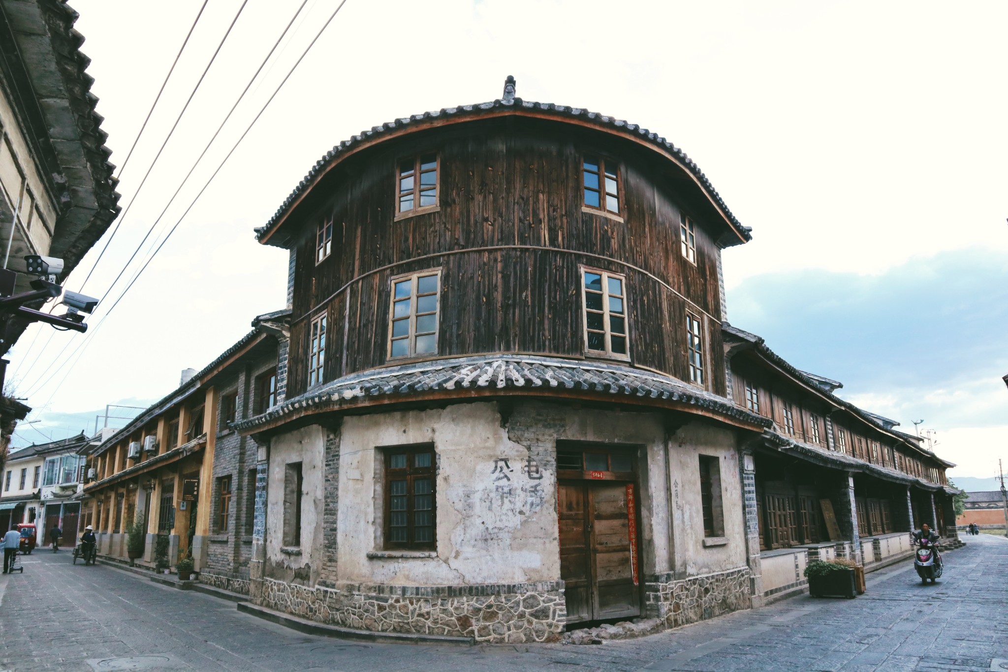 毋庸置疑,喜洲最吸引我的还是建筑。喜洲至今保存较为完整的明、清、民国间的民居就有近百院,其中四方街旁的严家大院是典型代表。除此之外,有名的院落还有董家大院、杨家大院、尹家大院。严、董、杨、尹是喜洲著名的四大商帮,所以镇上有很多他们姓氏开头的院落。还有就是下面这座著名的转角白族老楼。