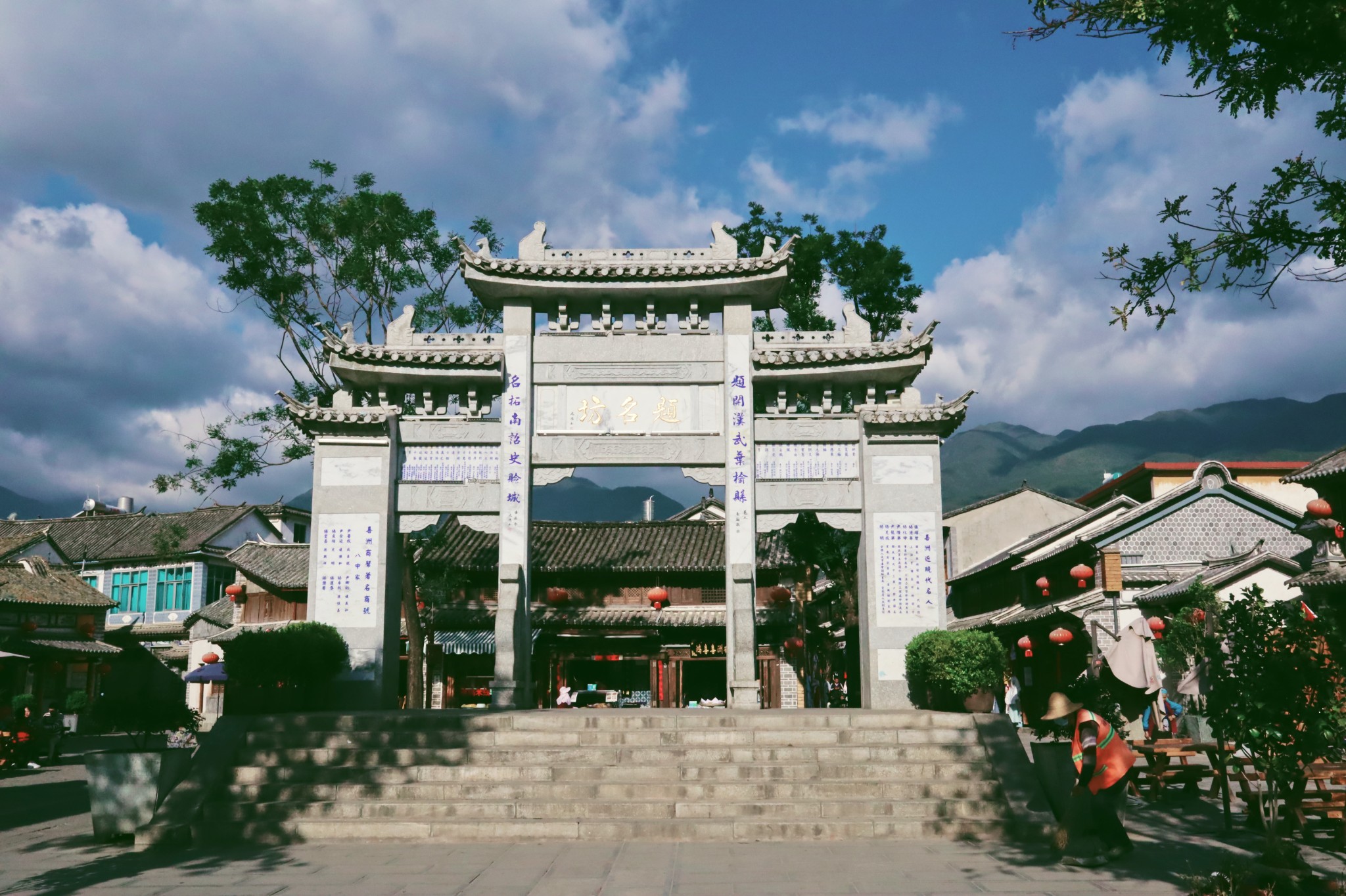 下面就正式开始我们的喜洲之行。我们从昆明坐高铁到了大理,在大理古城吃了一顿腊排骨,坐了一辆随手招停的面包车,和司机谈好价,把我们直接拉到了喜洲古镇口。本来是想找专门汽车站的,结果莫名其妙被三轮车大爷拉到了一个路口,和我们说就在这里等就行。我的天,前着村,后不着站,完全不知道该怎么坐车。倒是面包车司机看我们拉着行李箱,想必是游客,询问了我们目的地。后来得知在大理环线上,有很多这样接驳游客的车,只要谈好了价格,随上随走。