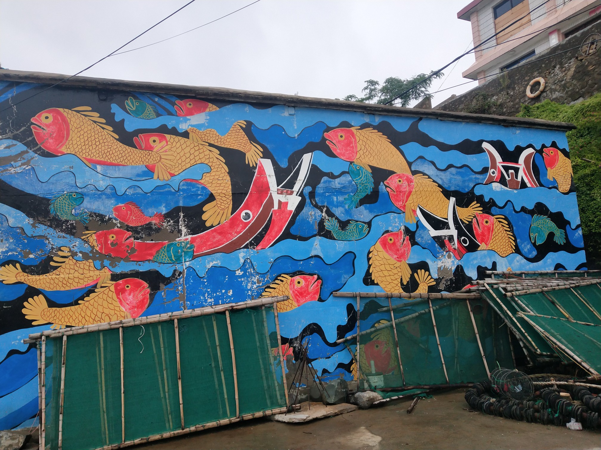 2020-9-19玉环下雨了,我们纠结了半天,去岛上还是去渔村,最后因为渔村离酒店近,考虑了渔村,刚到渔村阴天,走了外围一圈,拍拍照,没有人,但是很干净整洁,要走了,下起了雨,真的很庆幸天气没有让我们淋透
