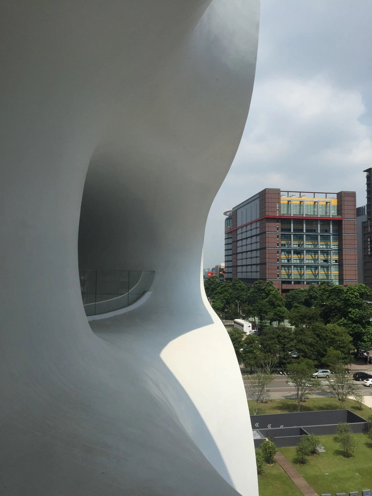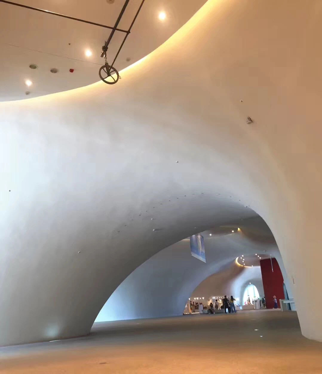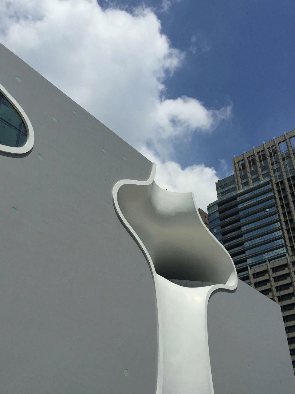 要从建筑的本身来写这一段,想必会变成长篇大论。与安腾忠雄同年出生的伊东丰雄,是当今非常了不起的建筑家之一。台中歌剧院强调的是与环境融合,施工时间非常长,完成时,伊东已七十多岁了。施工难度主要体现在台中歌剧院是没有梁柱的建筑。