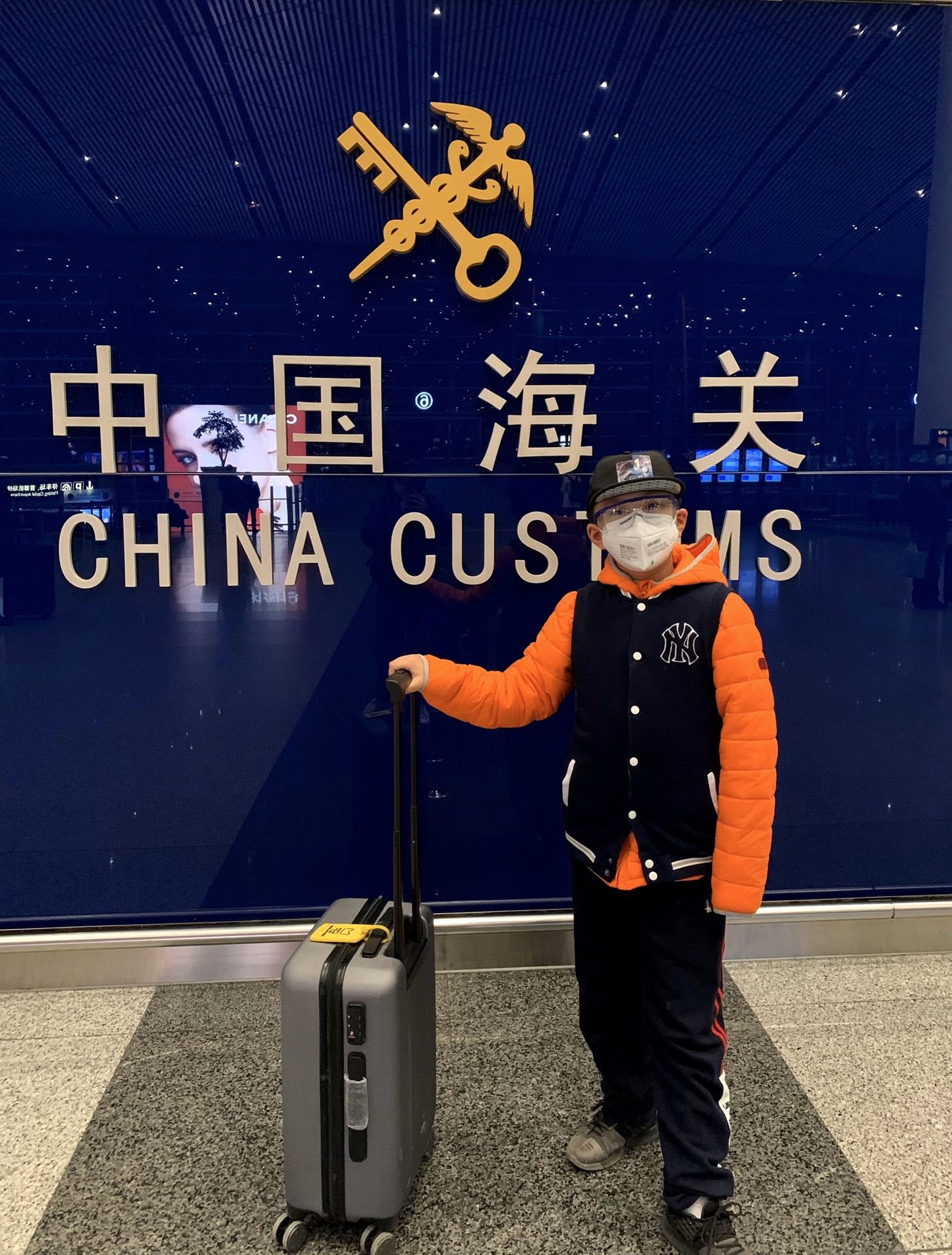 北京机场比起往日人少了很多,所有人都佩戴了口罩,不过像我家这样全副武装的也不多,换登机牌、托运行李、填写健康表、过海关、安检、坐小火车,赶紧找个清静的地方等待登机,眼瞅着机场的免税店也没敢进。