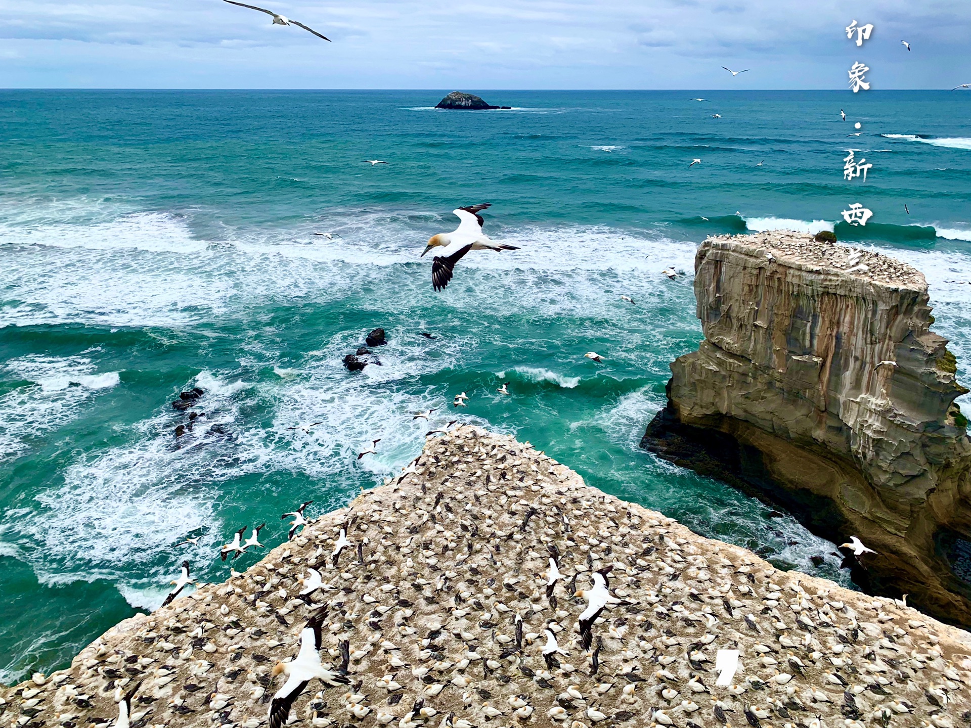 山崖边高高矗立的几块礁石,成为了数以千计的塘鹅栖息地。草木不生的山崖上,筑满了一个个紧挨的鸟窝,从未见过如此壮观的鸟类栖息地,深为震撼。