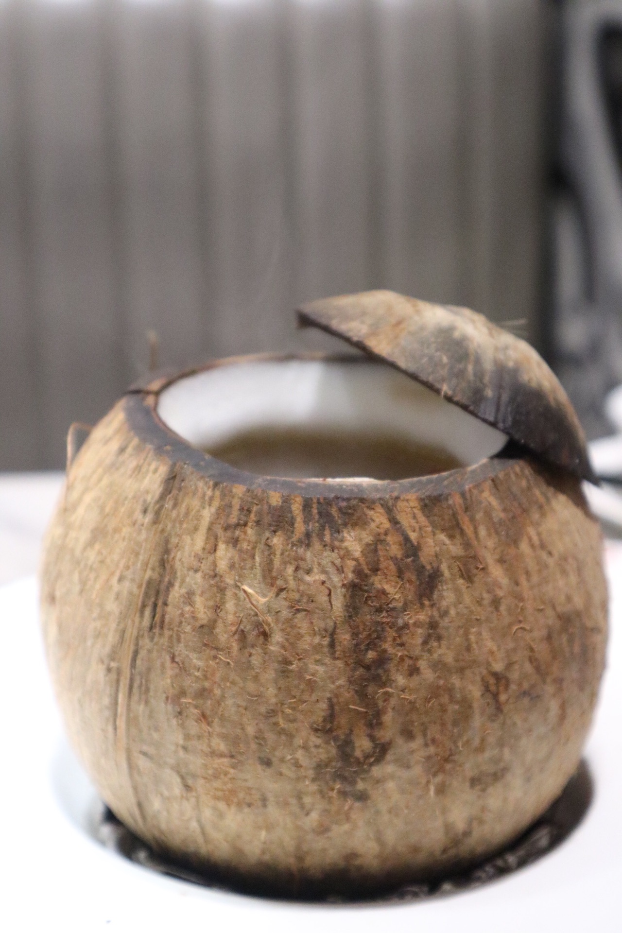 用椰子水炖文昌鸡小火熬6个小时熬成的里面食材丰富 鸡脚鸡肉排骨都有 汤汁超鲜美
