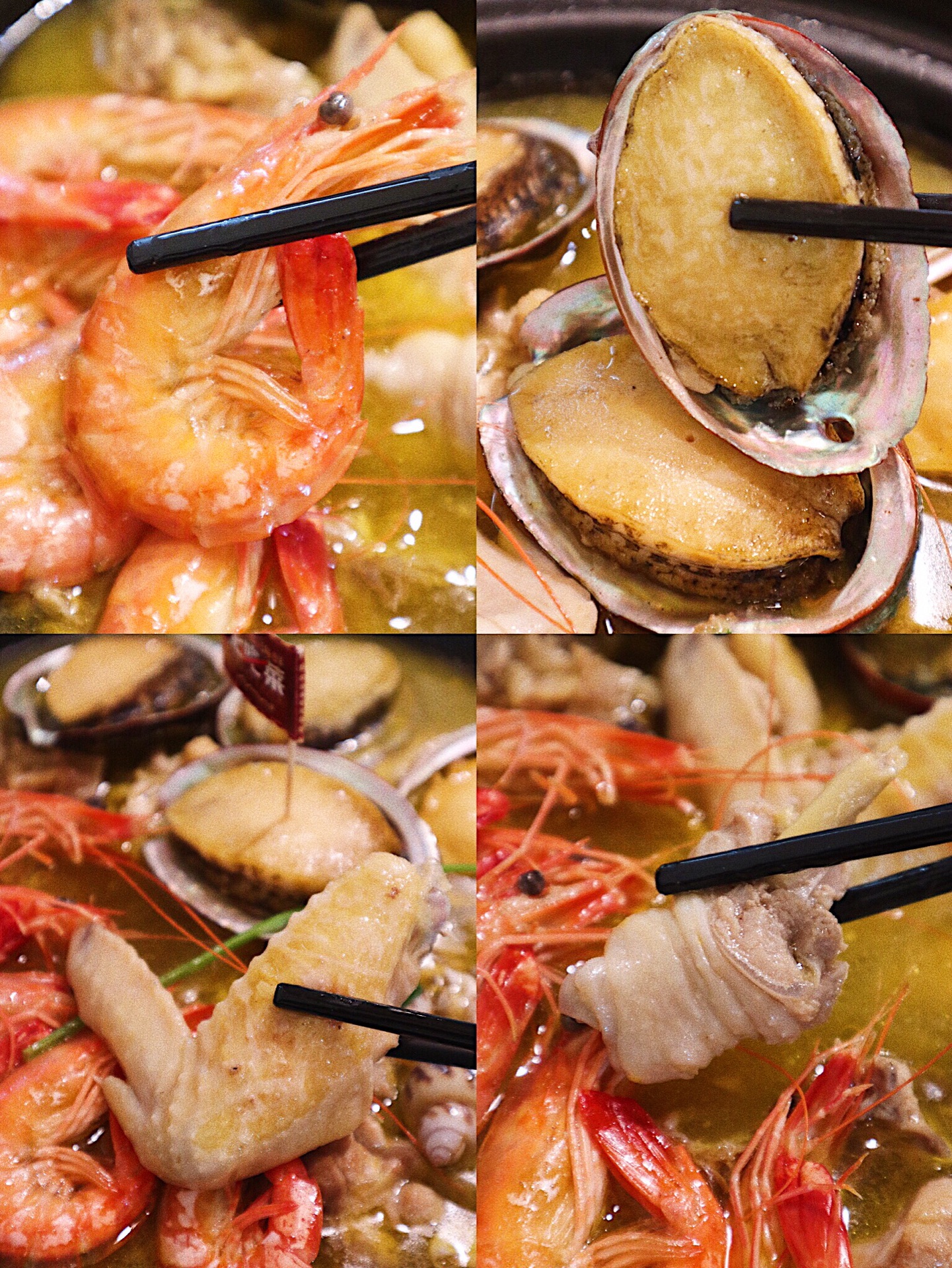 脑洞超大的老板把生猛的鲍鱼和海南名菜文昌鸡煲合二为一 一道菜就让你拥有双倍快乐~ 个大肉厚的鲍鱼嚼劲十足 鲜嫩Q弹
