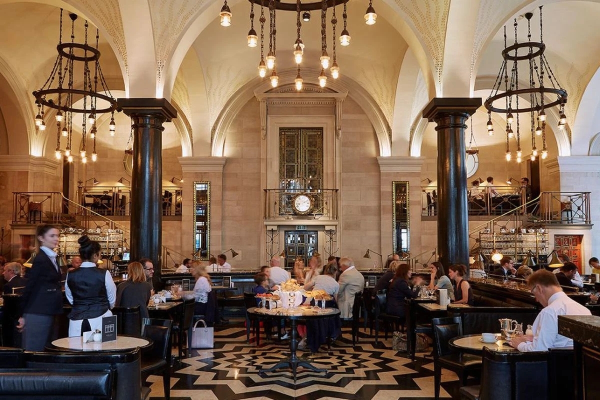 The Wolseley 华丽的厅堂里有着优雅的人们正在用餐,有单独一人的老绅士,也有似乎一早就在谈公事的商务人士,更有早晨的女士们的聚会,你定会感慨他们真的好早啊!人们在高挑的空间中轻声细语,座位舒适而有适度的间隔。
