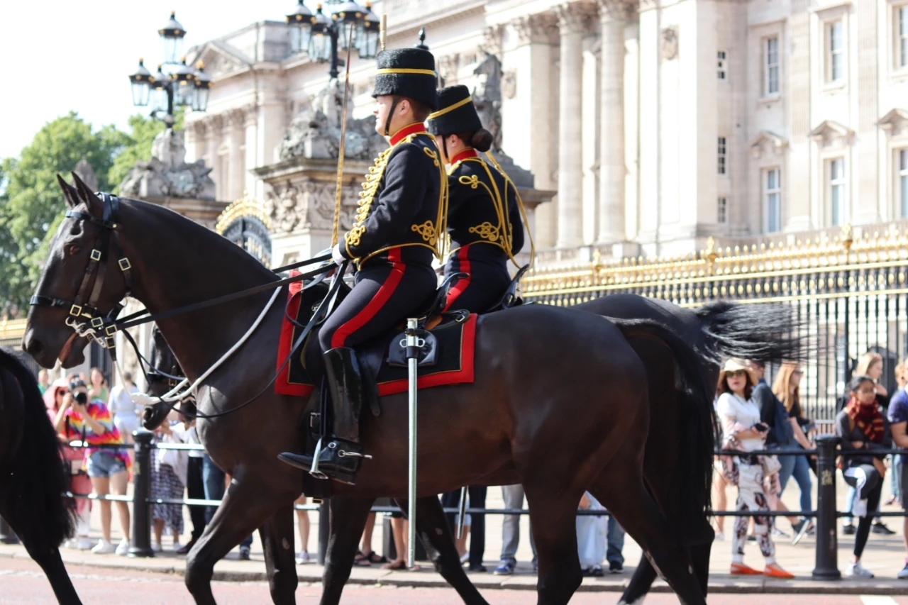 在白金汉宫外,你可以观看到最古老的皇家换岗仪式。换岗仪式是新的卫兵正式从旧的卫兵手中接过看护白金汉宫职责。每年4到9 月,新旧卫兵在军乐的伴奏下进行换岗仪式。时间在上午11:30到12:00举行,其他月份每两天举行一次。皇家卫队成员,就是那些身穿红色外套,带一个黑色的高高的大帽子的官兵,他们会在军乐和口令声中做各种列队表演,并举枪互致敬礼。