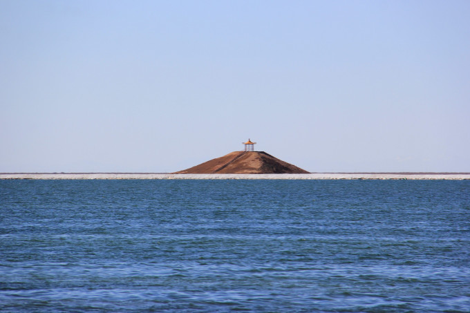 湖的西面远处有一小山包,上有一亭子,在土路上就能看见。那是戈壁神仙住的地方吗?