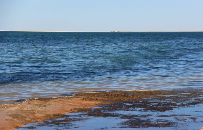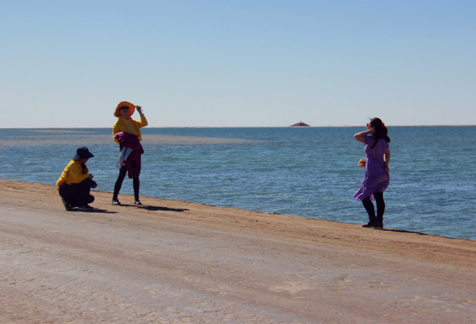 早晨六点过,在帐篷中迷迷糊糊醒来,感觉外面的大风没有了。翻身起来想去拍点水上雅丹晨曦,出帐篷仔细打望,附近的制高点-小山包距离太远,只好作罢。继而在停车场围栏处,踮起脚尖对着远处的西海舰队拍了几张。此时,刚哥很是羡慕昨晚住上公园内酒店的游客了,他们可以尽情地观赏水上雅丹的日出。