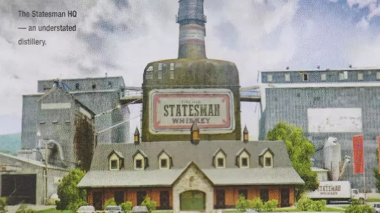 在《王牌特工2黄金圈》这部电影一开始的时候,反派“毒品女王”经过一系列的手段把王牌特工各个分部及总部——金士曼裁缝铺轰炸一空,主角为了和他们的美国同事取得联系,必须得到深藏于一家“酒店”中的线索。拿到线索后,两人来到美国特工总部——Statesman波本威士忌酒厂。