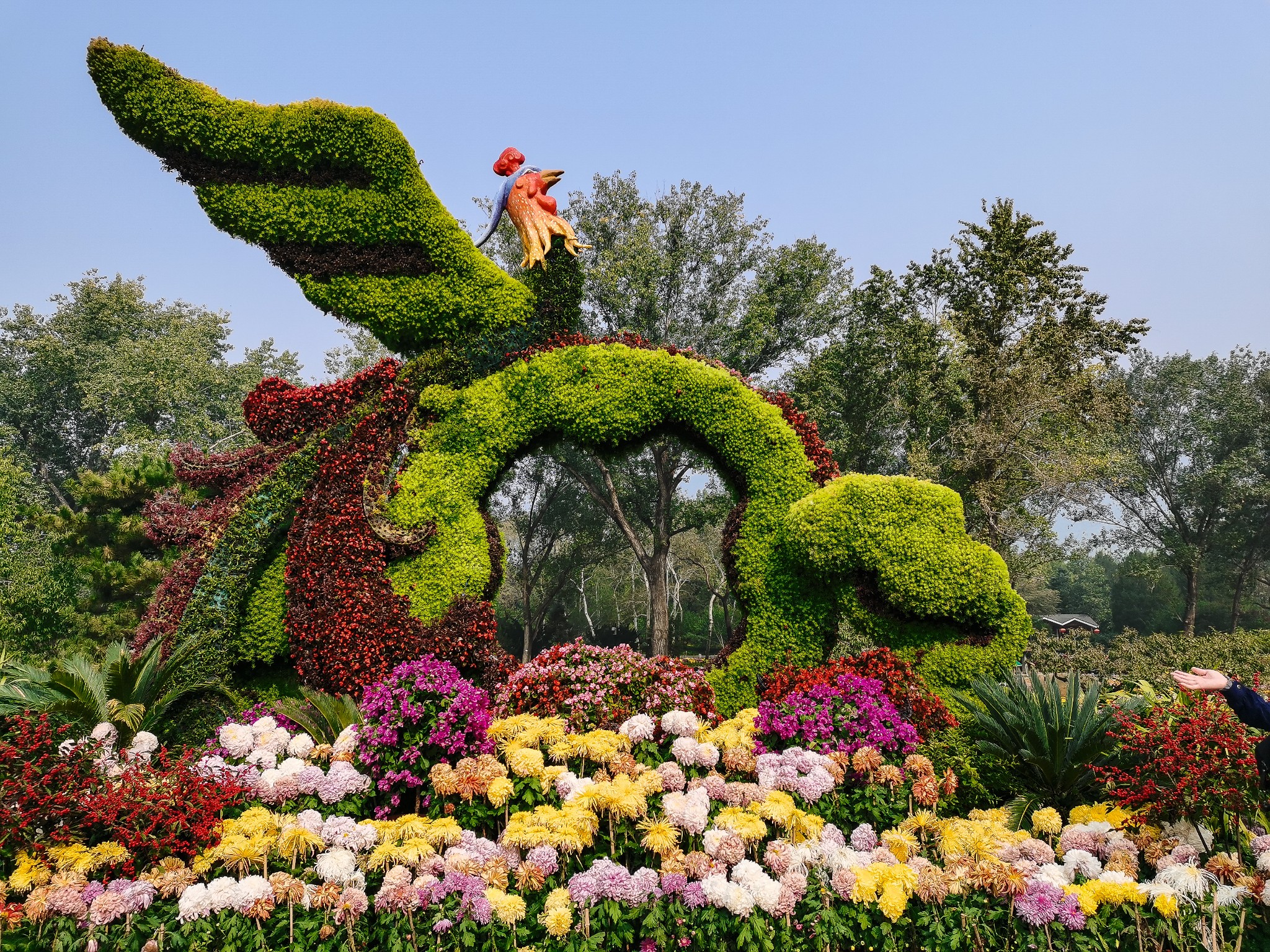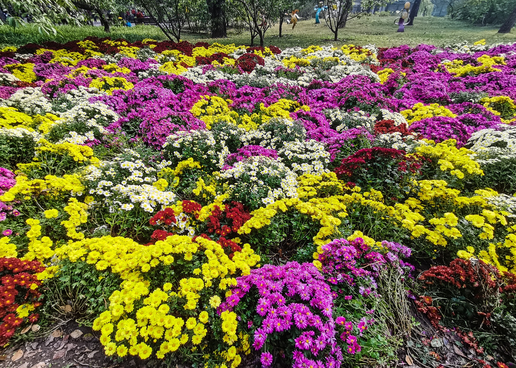 植物园秋高气爽,一片秋天的景象,菊花争相斗艳,