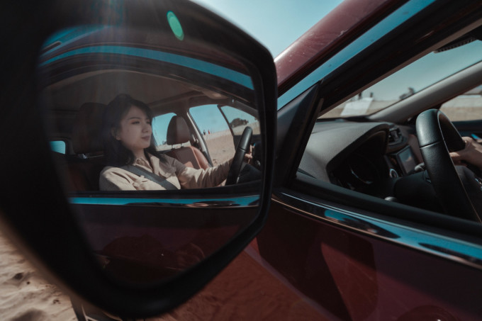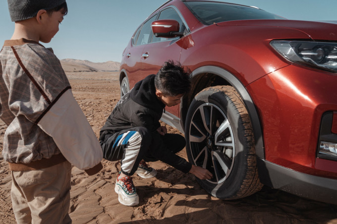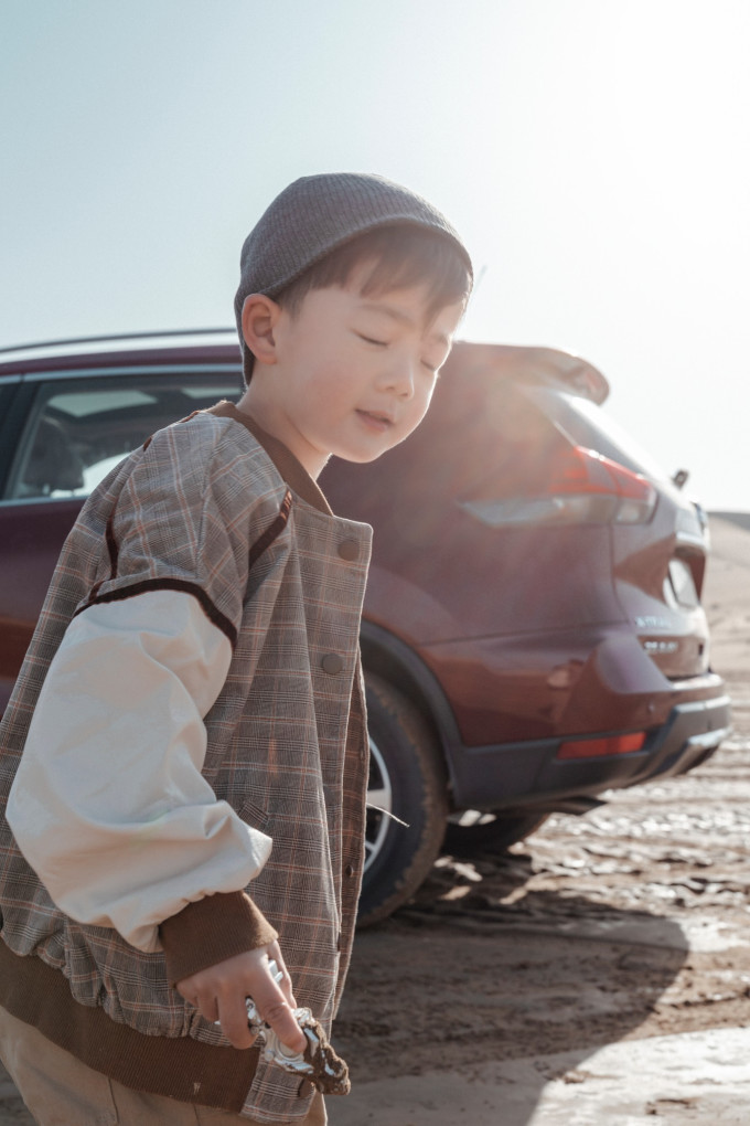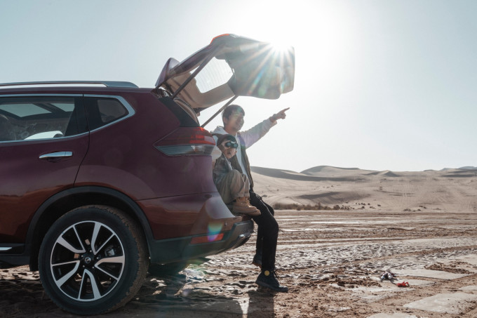 进入沙漠前,我们坐进了新奇骏的尾箱,后备箱盖成了我们的遮阳扇,“伞”下,我们一边打望远方的沙丘,一边啃着小面包,手里还端着热奶茶,沙漠里的“上午茶”开启了我们元气满满的一天。
